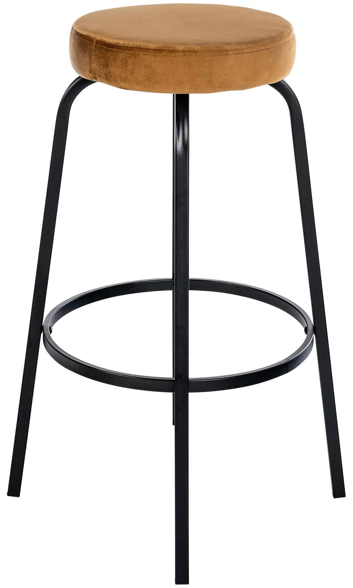 Le tabouret de bar séduit par son assise ronde rembourrée et son piètement métallique noir mat à quatre pieds.