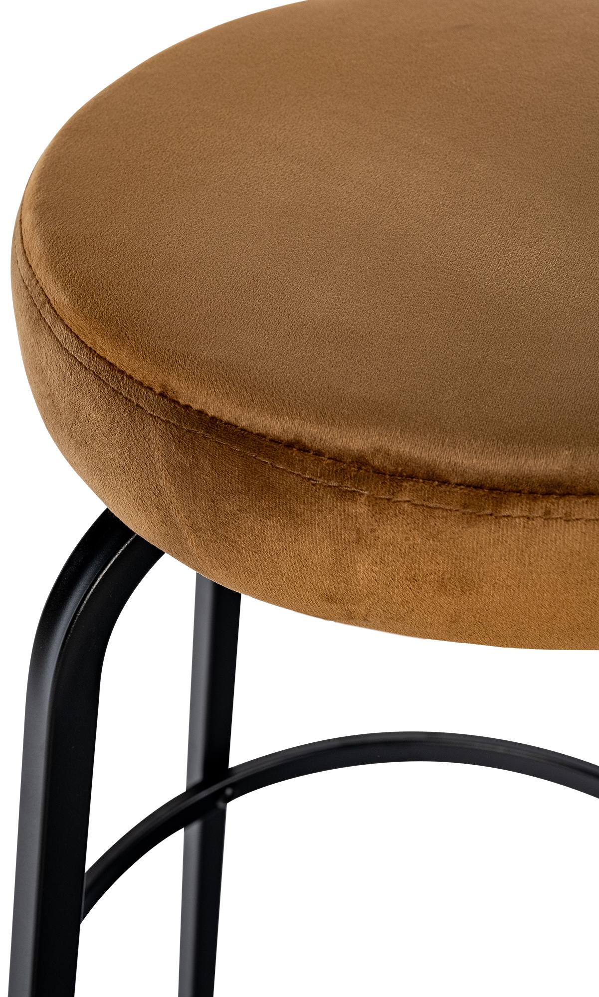 Tabouret de bar avec repose-pieds en velours marron clair piètement métallique noir mat à quatre pieds 10_0006024