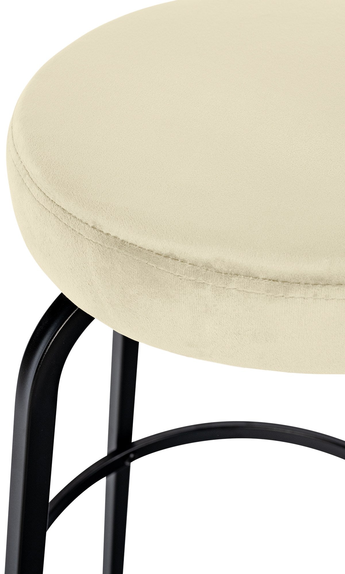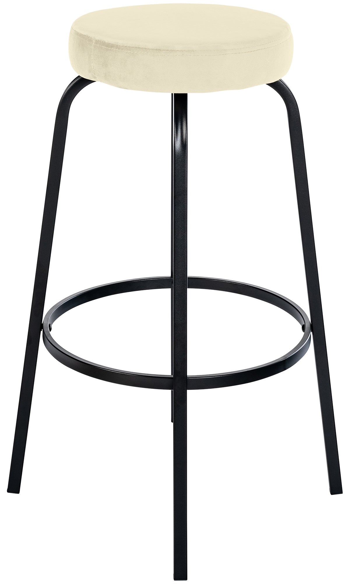 Tabouret de bar avec repose-pieds en velours crème piètement métallique noir mat à quatre pieds 10_0005809