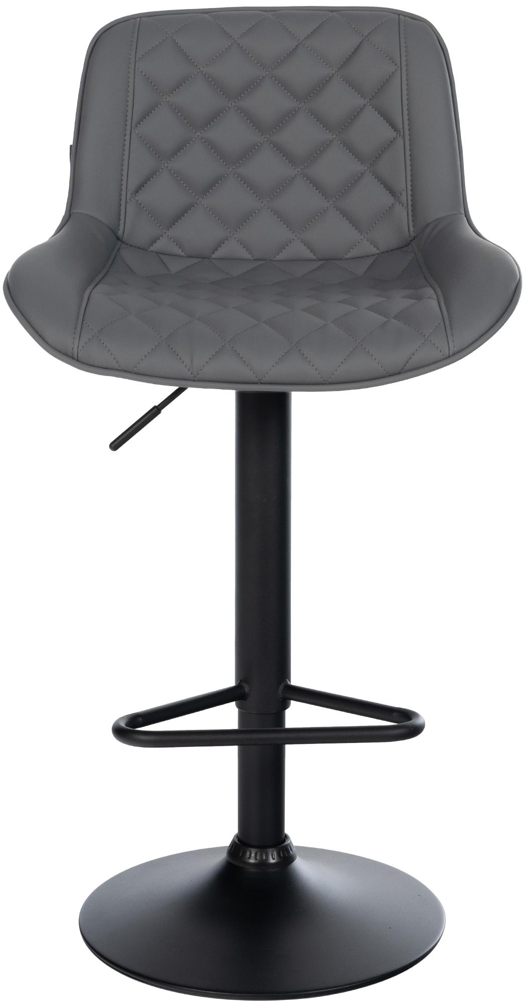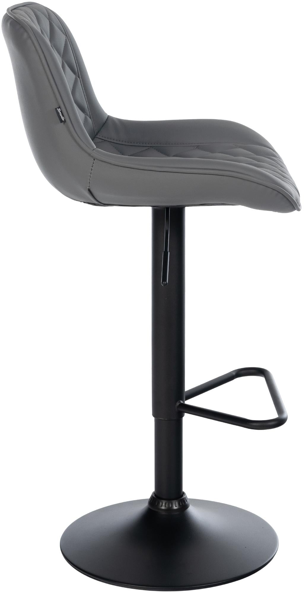 Tabouret de bar x1 repose-pieds hauteur réglable en similicuir gris foncé coutures losange cadre métal noir 10_0005929