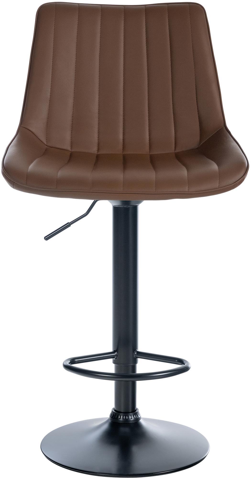 Tabouret de bar x1 réglable en hauteur pivotant à 360° assise en similicuir marron couture verticale pied métal noir 10_0005885