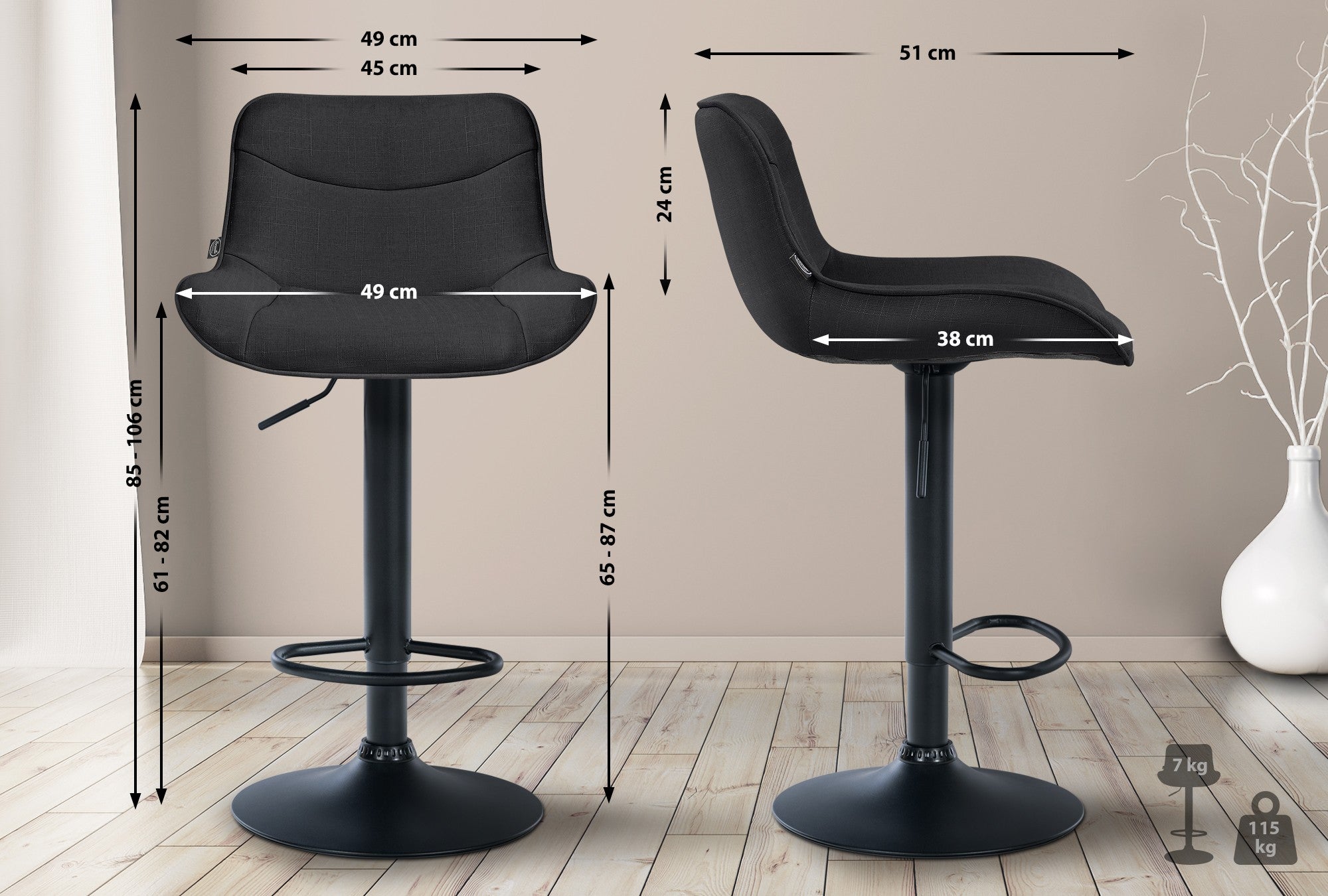 Tabouret de bar x1 pivotant forme ergonomique surpiqûres décoratives en tissu noir cadre en métal noir 10_0005913