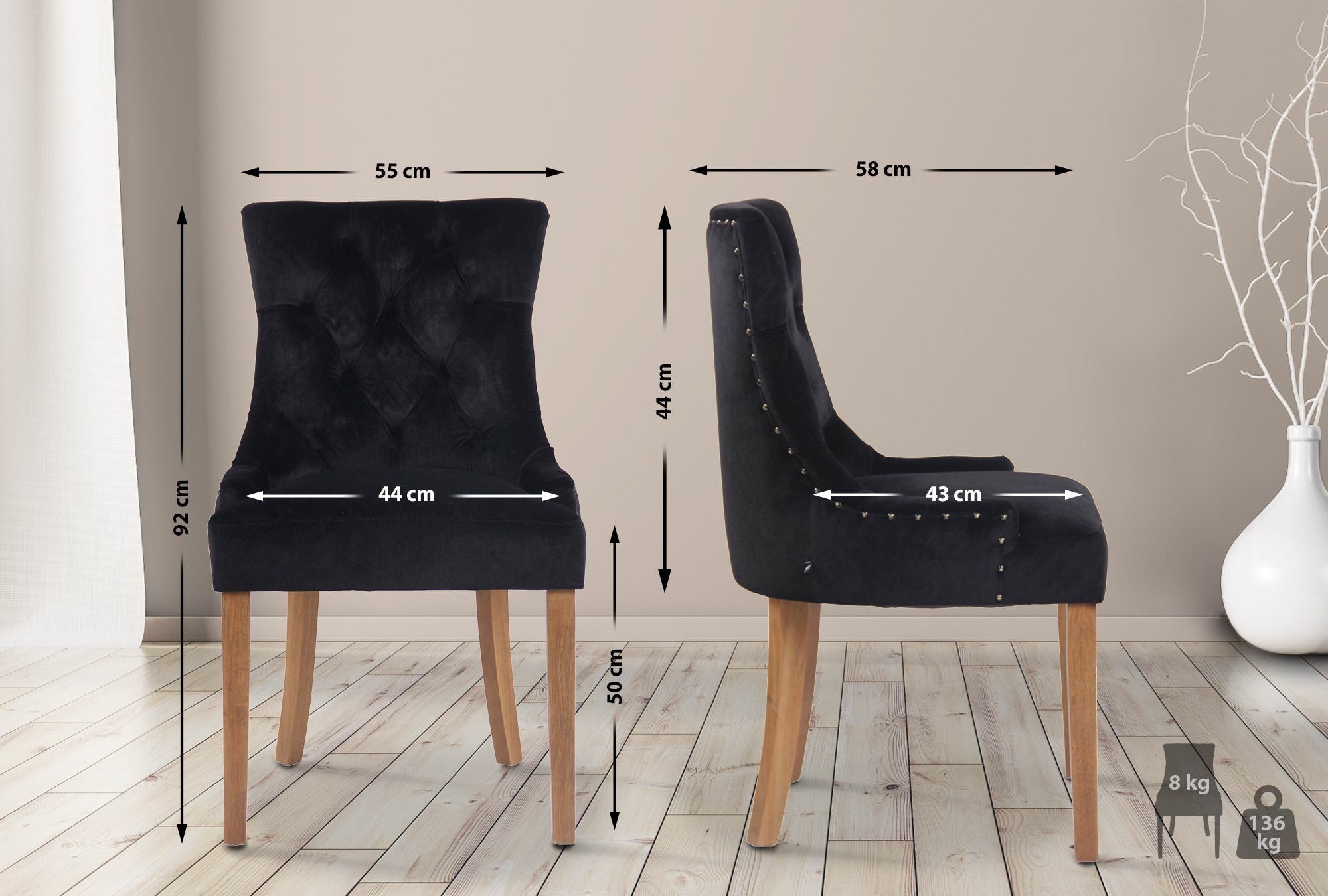 Chaise de salle à manger x1 design antique capitonné en velours noir avec 4 pieds en bois clair 10_0001938