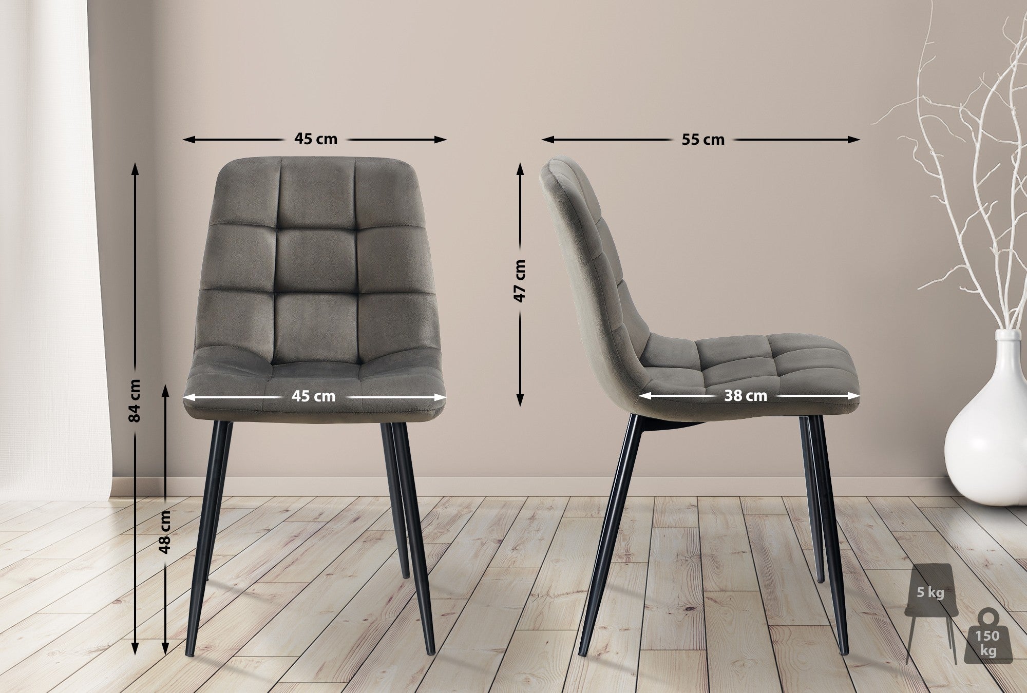 Chaise de salle à manger x1 coutures forme carrées en velours anthracite pieds en métal noir 10_0001969