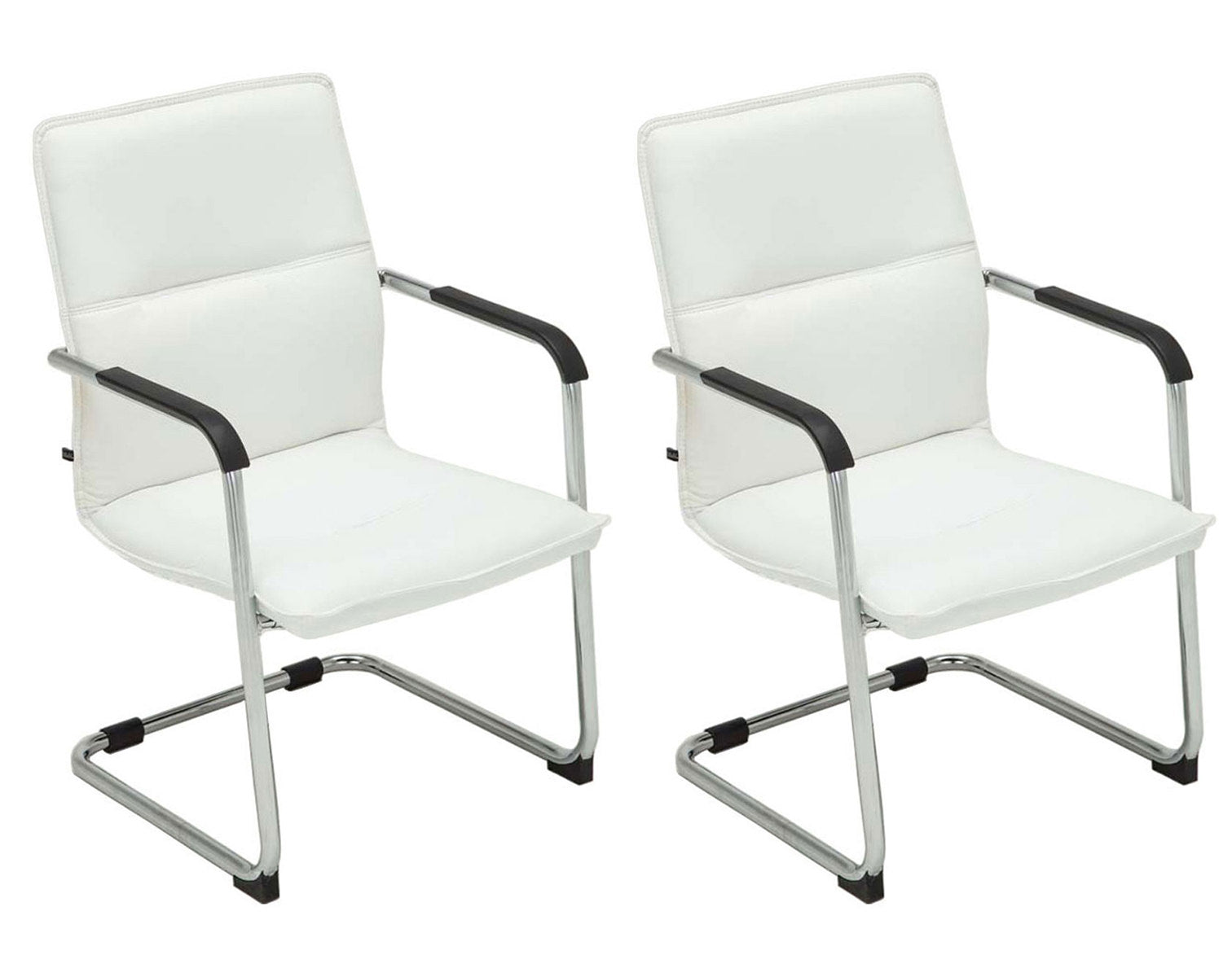 Lot de 2 fauteuils de bureau chaises visiteur avec accoudoirs en PVC blanc et métal chromé 10_0001887