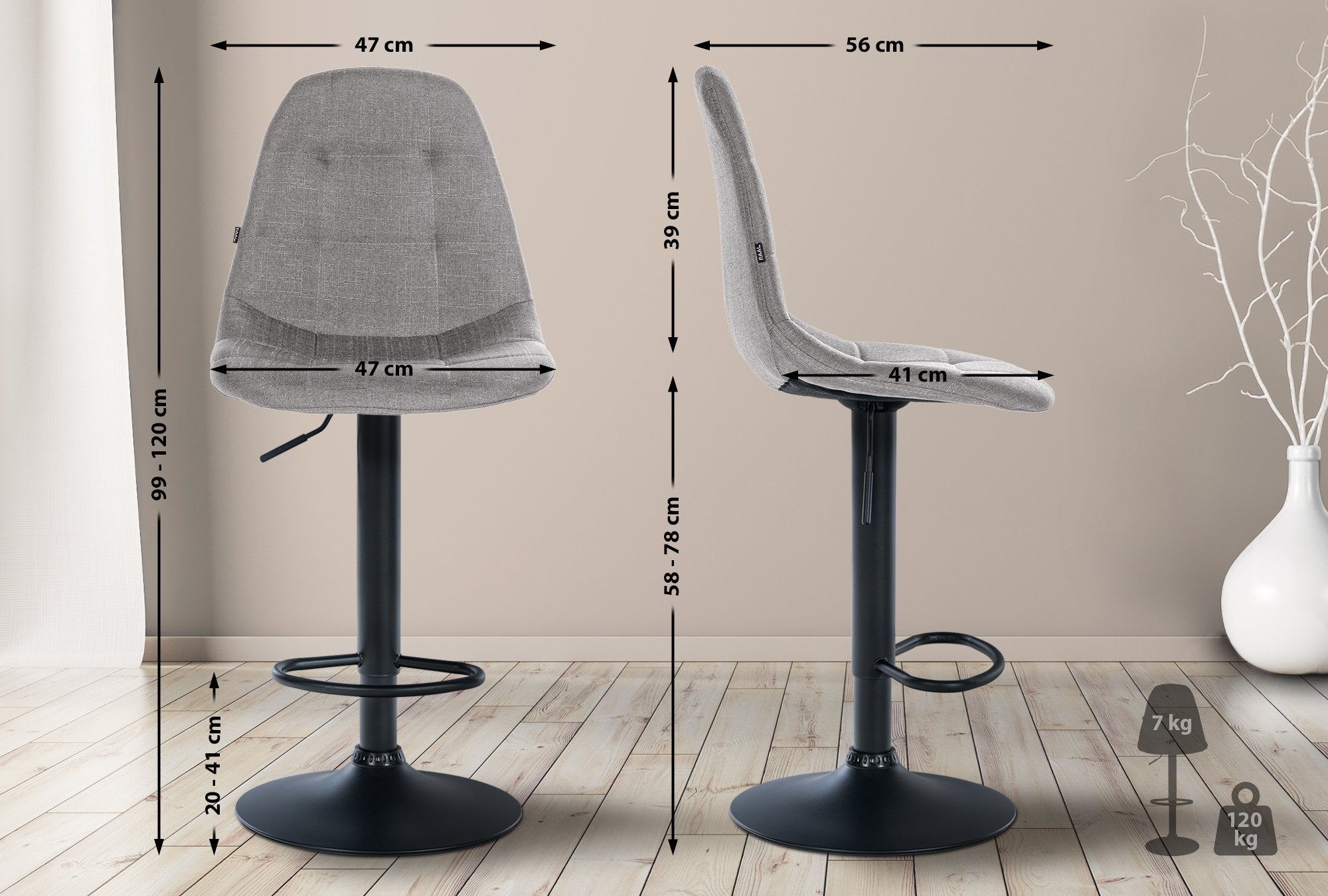 Le réglage en hauteur du cadre métallique permet de trouver la hauteur d'assise parfaite et la fonction pivotante à 360 degrés assure une grande liberté de mouvement. Le repose-pieds intégré offre un confort d'assise supplémentaire. Enfin, le tabouret de bar est équipé de protections de sol afin que même les surfaces sensibles soient protégées.