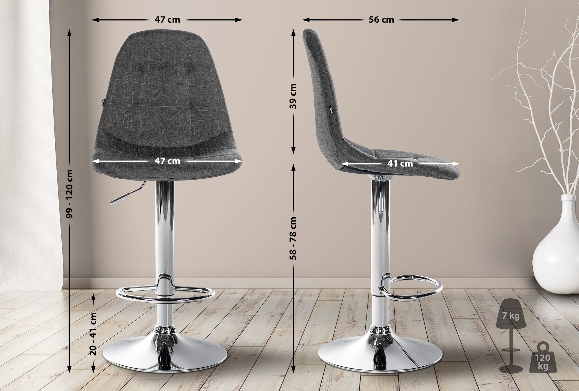 Tabouret de bar x1 avec repose-pieds hauteur réglable pivotant assise en tissu gris foncé cadre métallique chromé 10_0004845