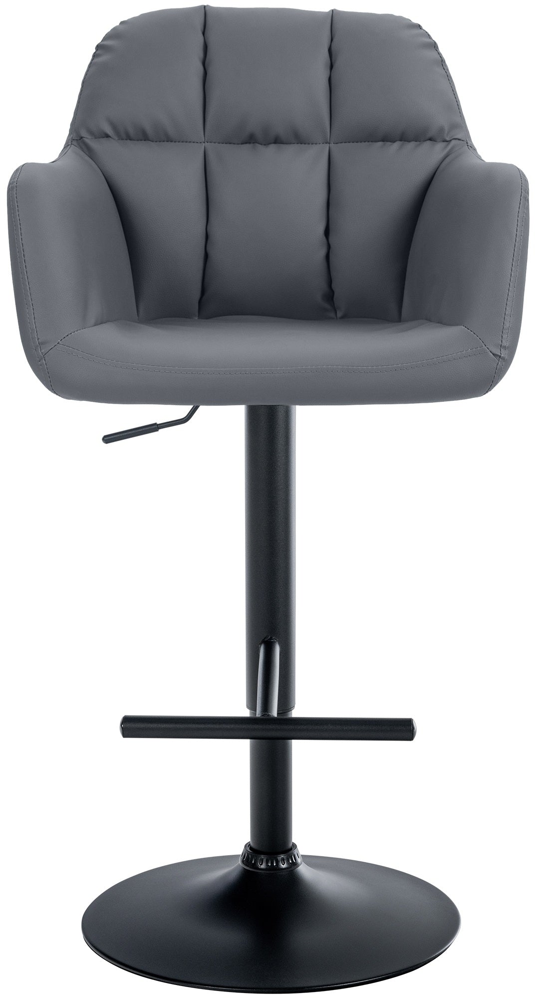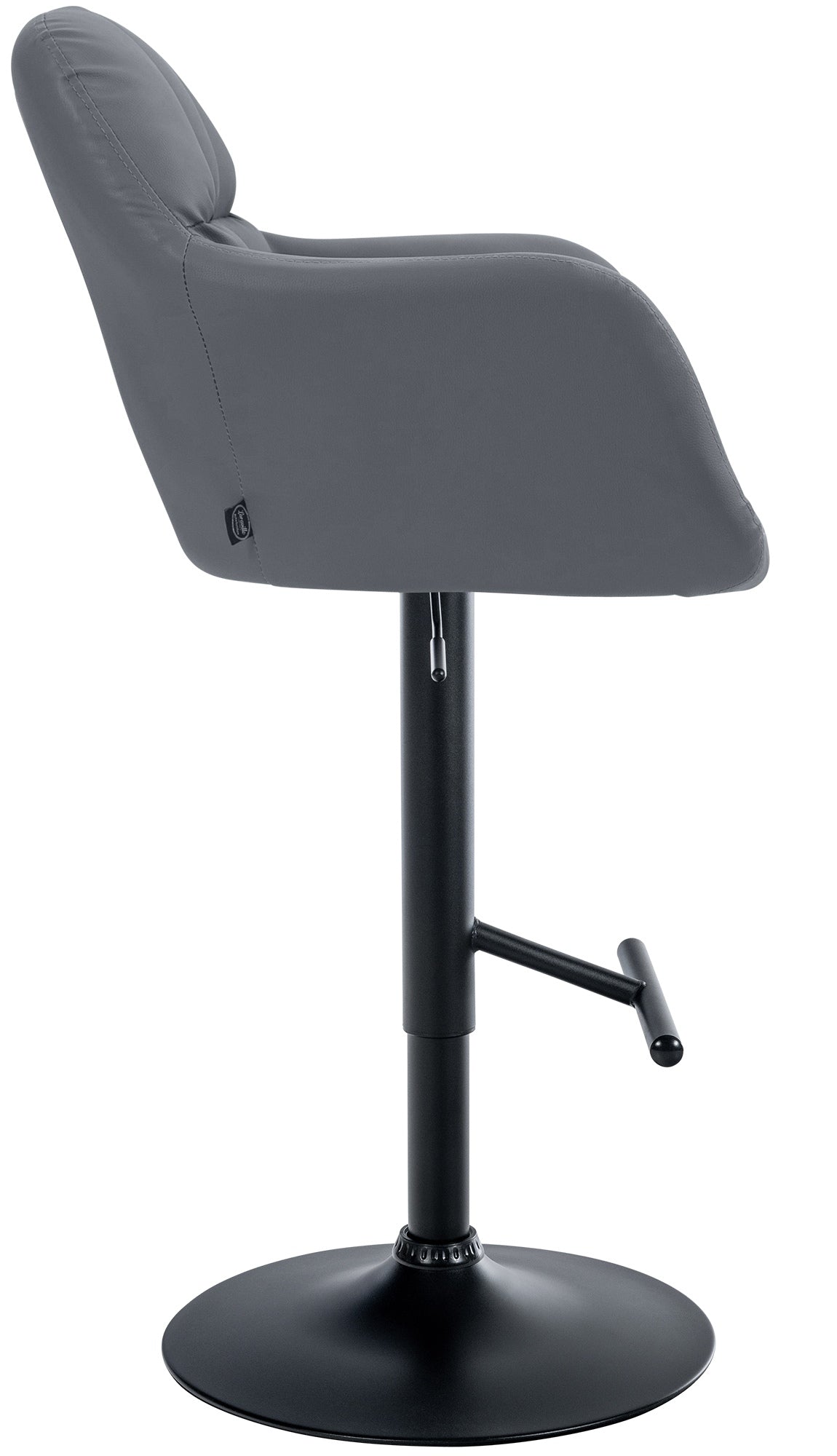 Tabouret de bar chaise haute x1 fonction rotation 360° en PVC gris avec coutures décoratives piètement métal noir 10_0005262