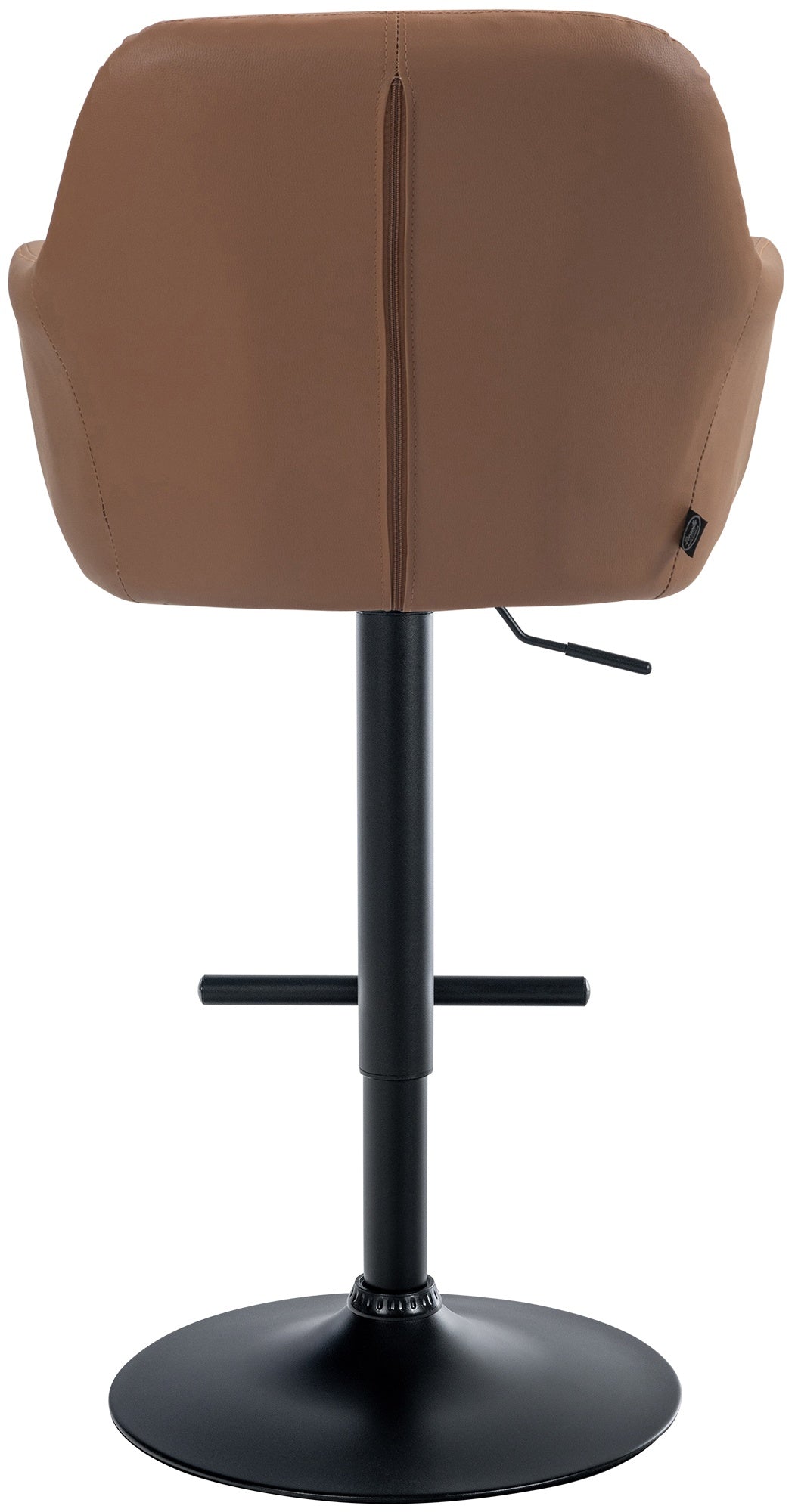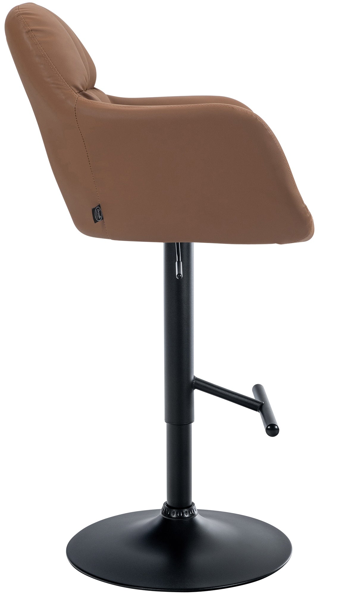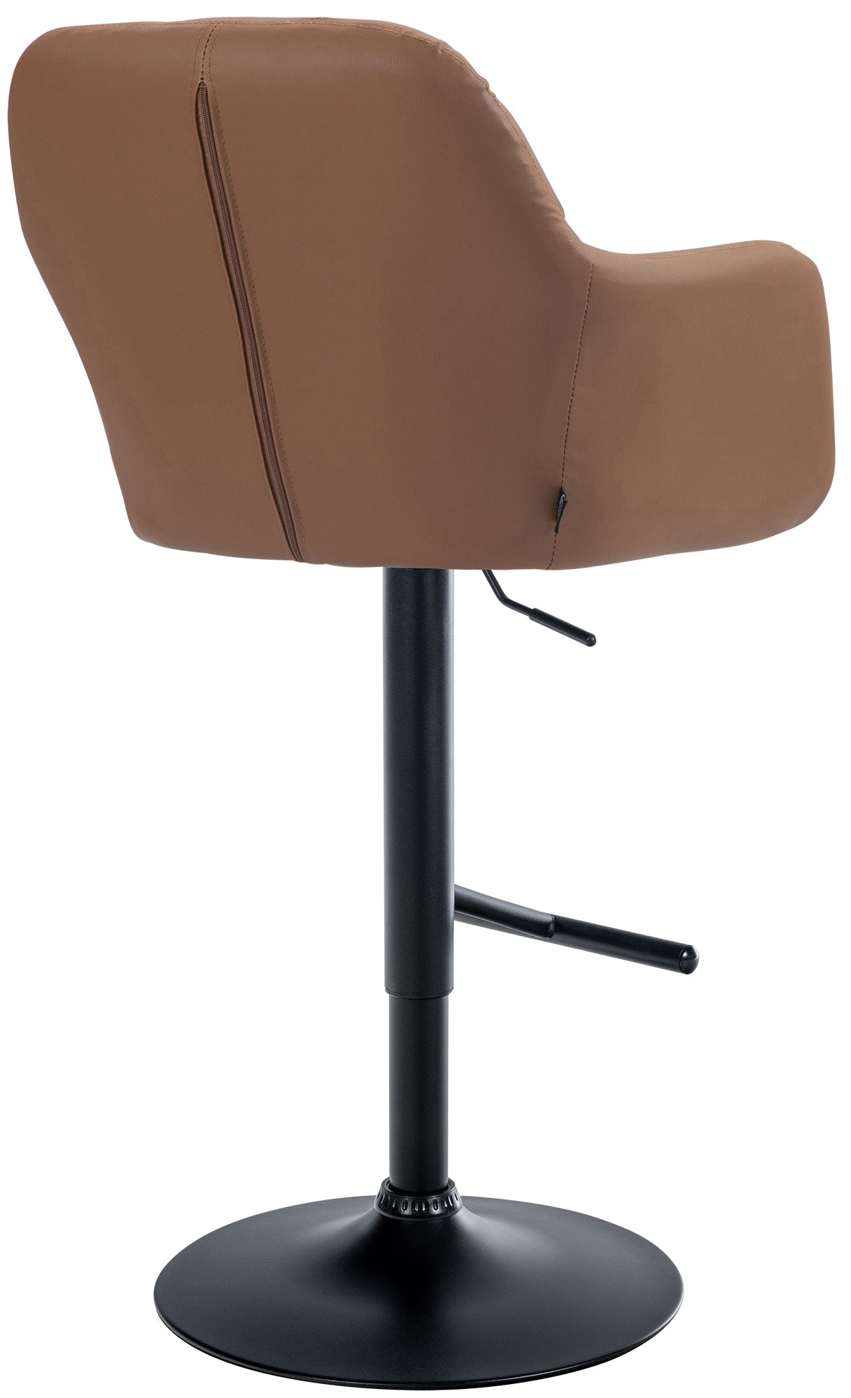 Tabouret de bar chaise haute x1 fonction rotation 360° en PVC marron clair avec coutures décoratives piètement métal noir 10_0005263