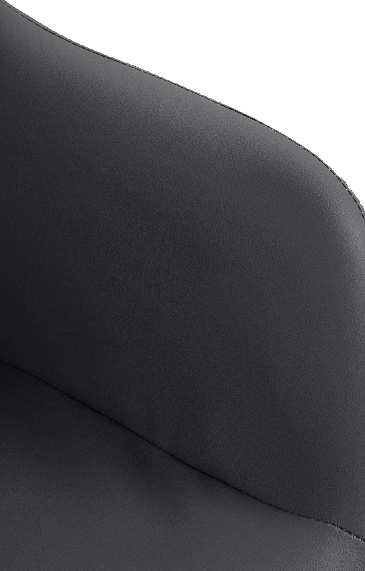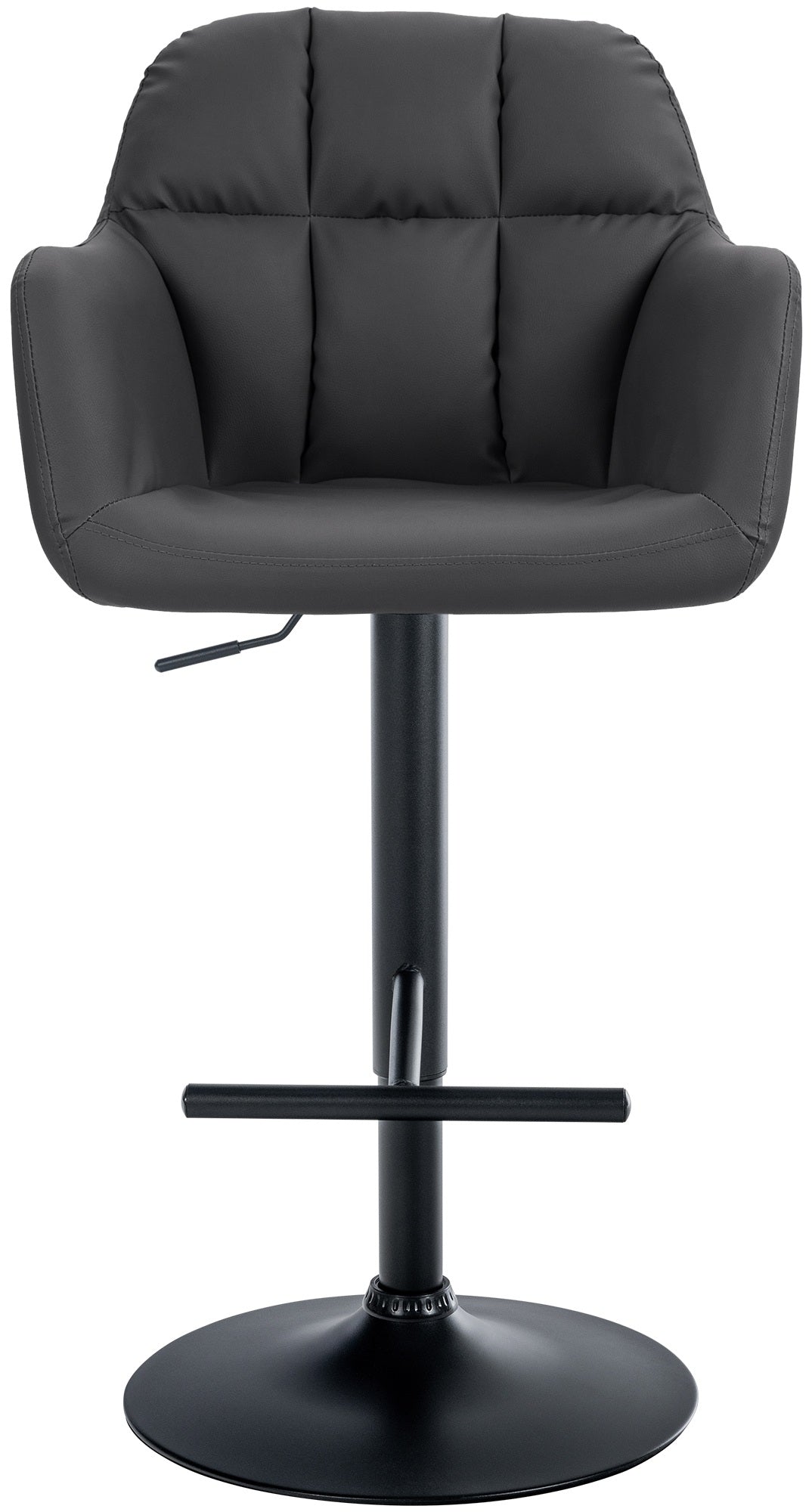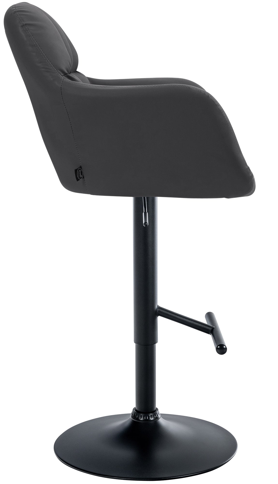 Tabouret de bar chaise haute x1 fonction rotation 360° en PVC noir avec coutures décoratives piètement métal noir 10_0005259