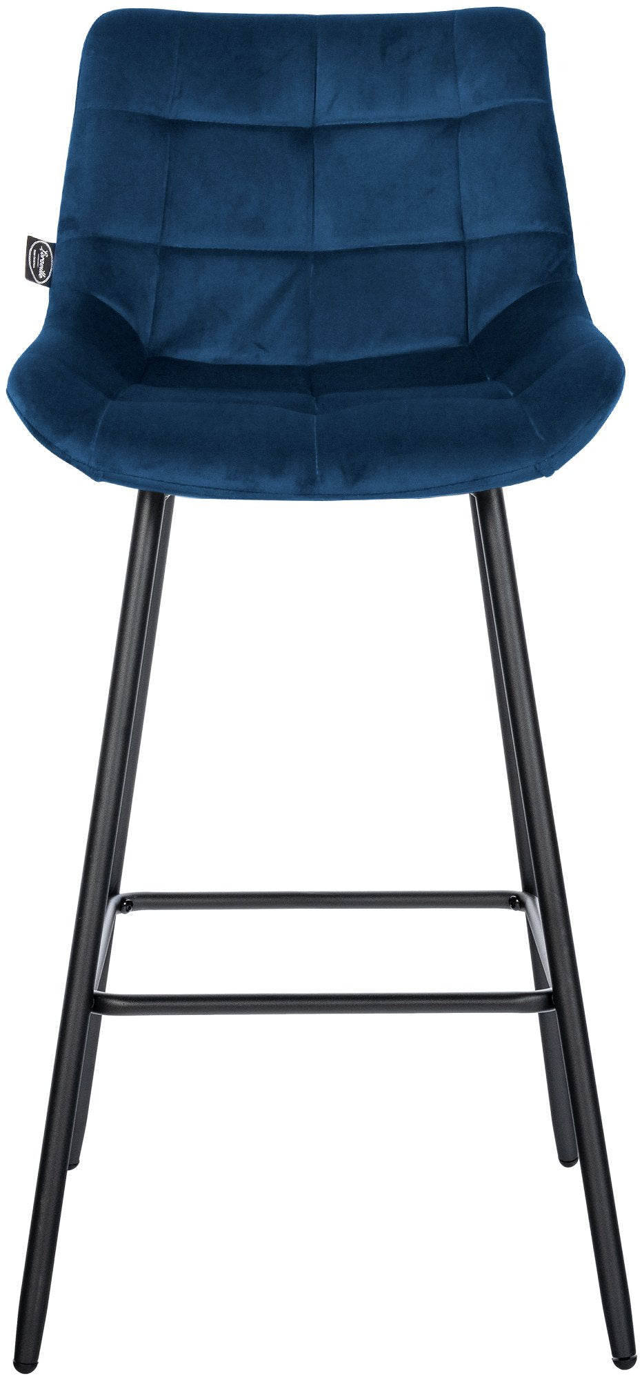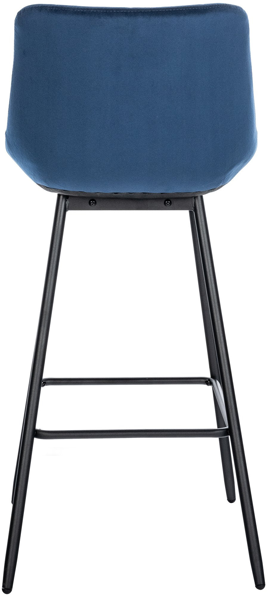 Tabouret de bar x1 avec repose-pieds revêtement en velours bleu piètement à quatre pieds en métal noir 10_0005462