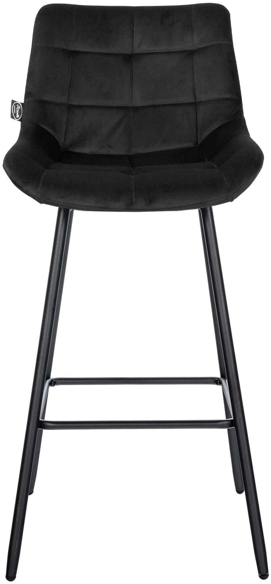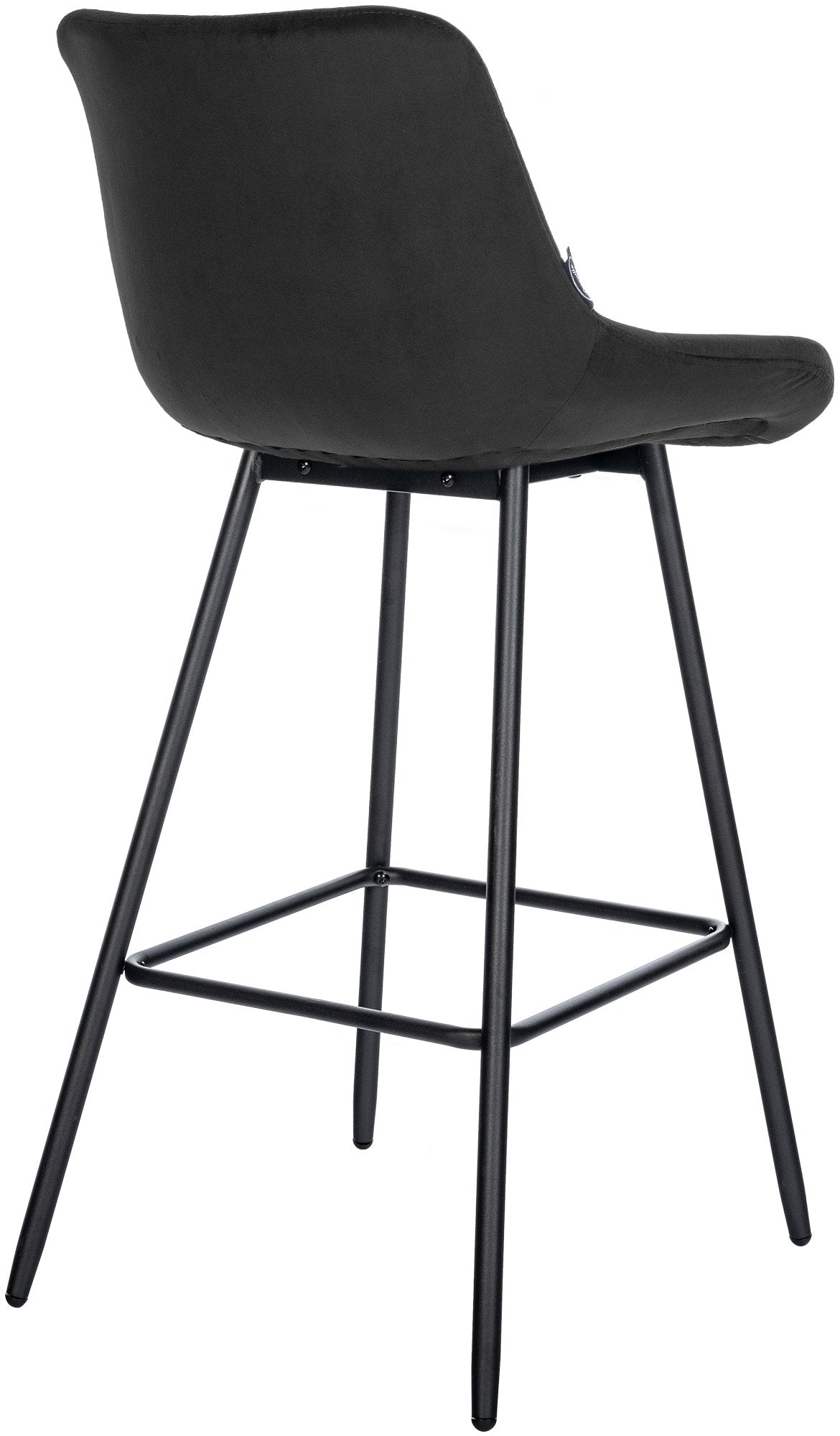 Tabouret de bar x1 avec repose-pieds revêtement en velours noir piètement à quatre pieds en métal noir 10_0005466