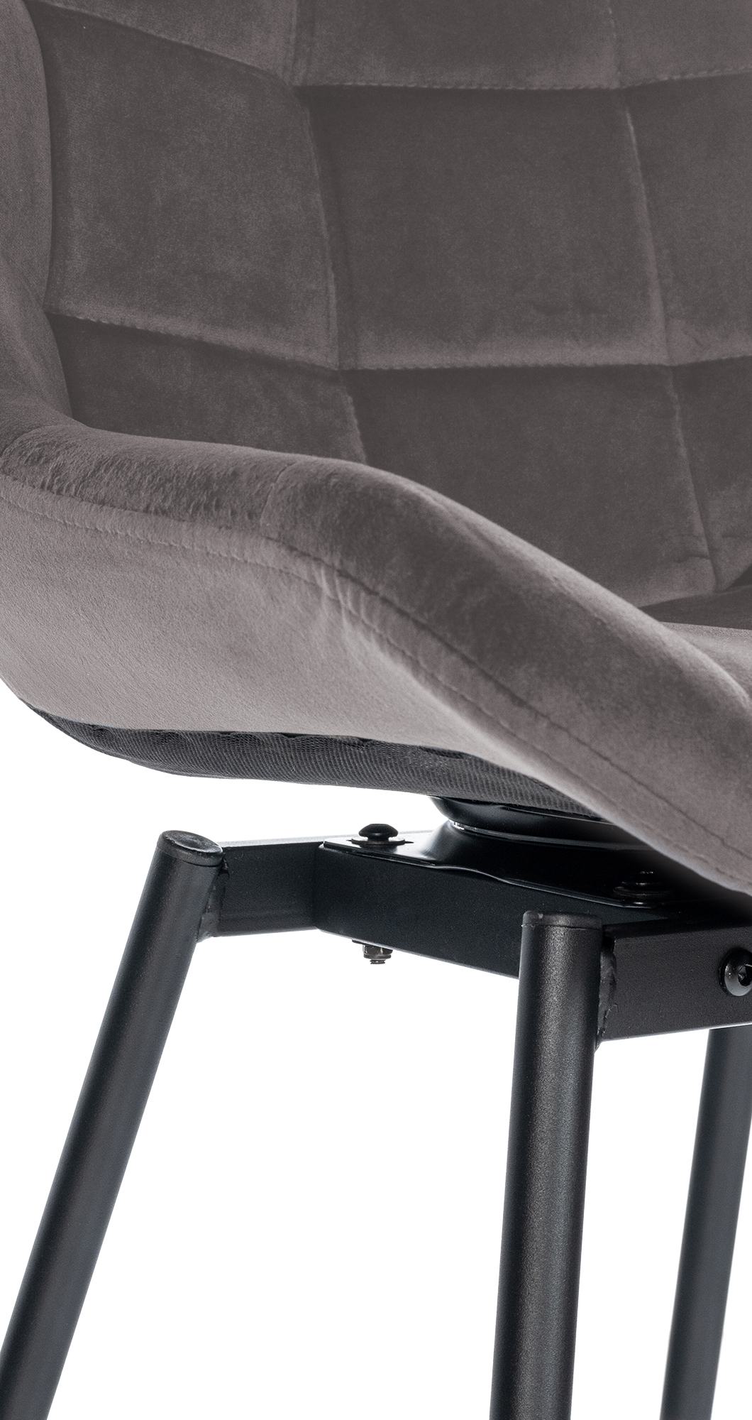 Tabouret de bar pivotant x1 avec repose-pieds revêtement en velours gris piètement à quatre pieds en métal noir 10_0005474