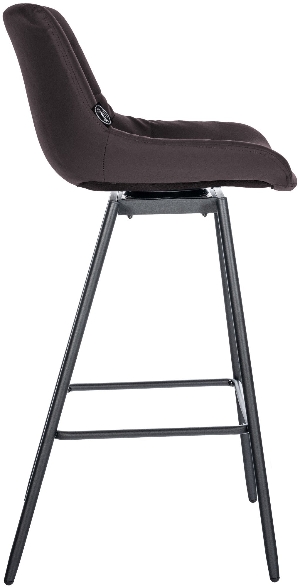 Tabouret de bar pivotant x1 avec repose-pieds revêtement en PVC marron piètement à quatre pieds en métal noir 10_0005471