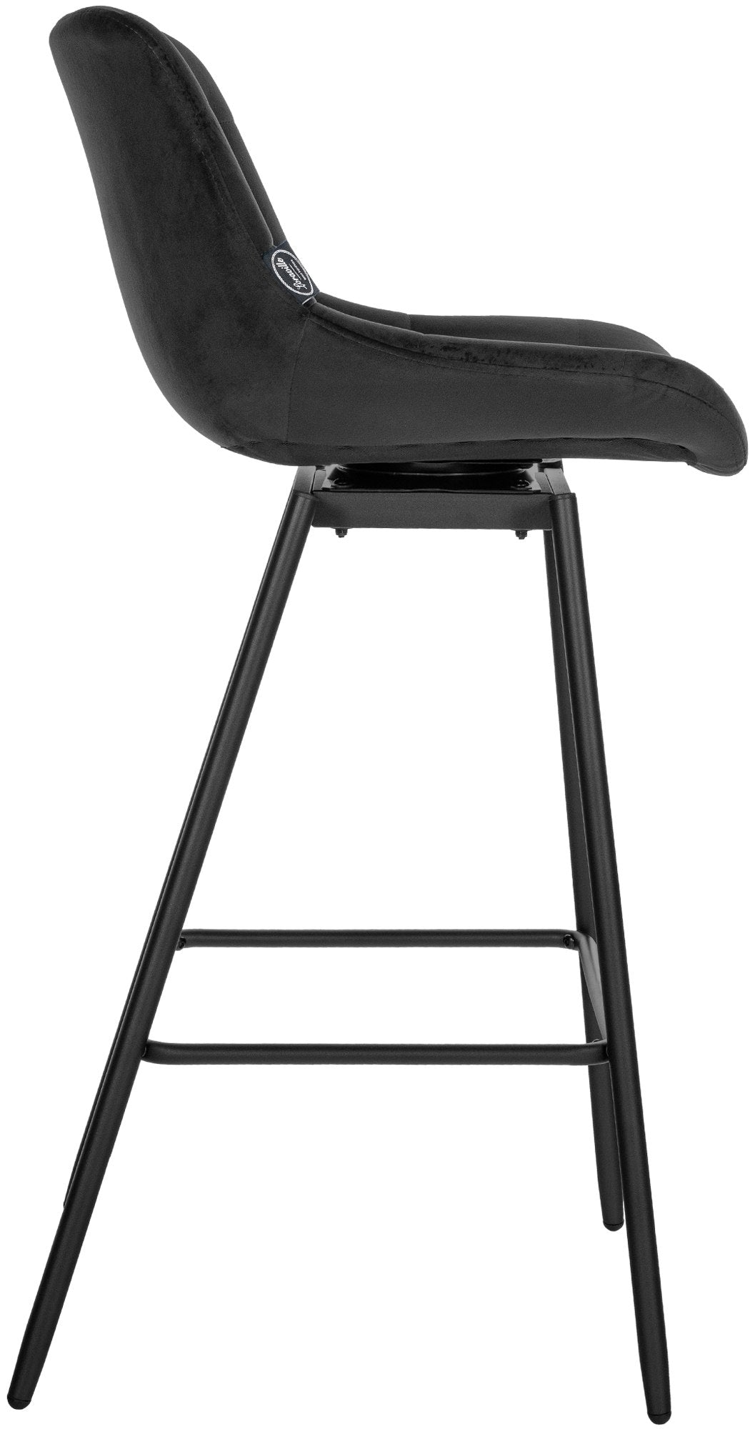 Tabouret de bar pivotant x1 avec repose-pieds revêtement en velours noir piètement à quatre pieds en métal noir 10_0005477