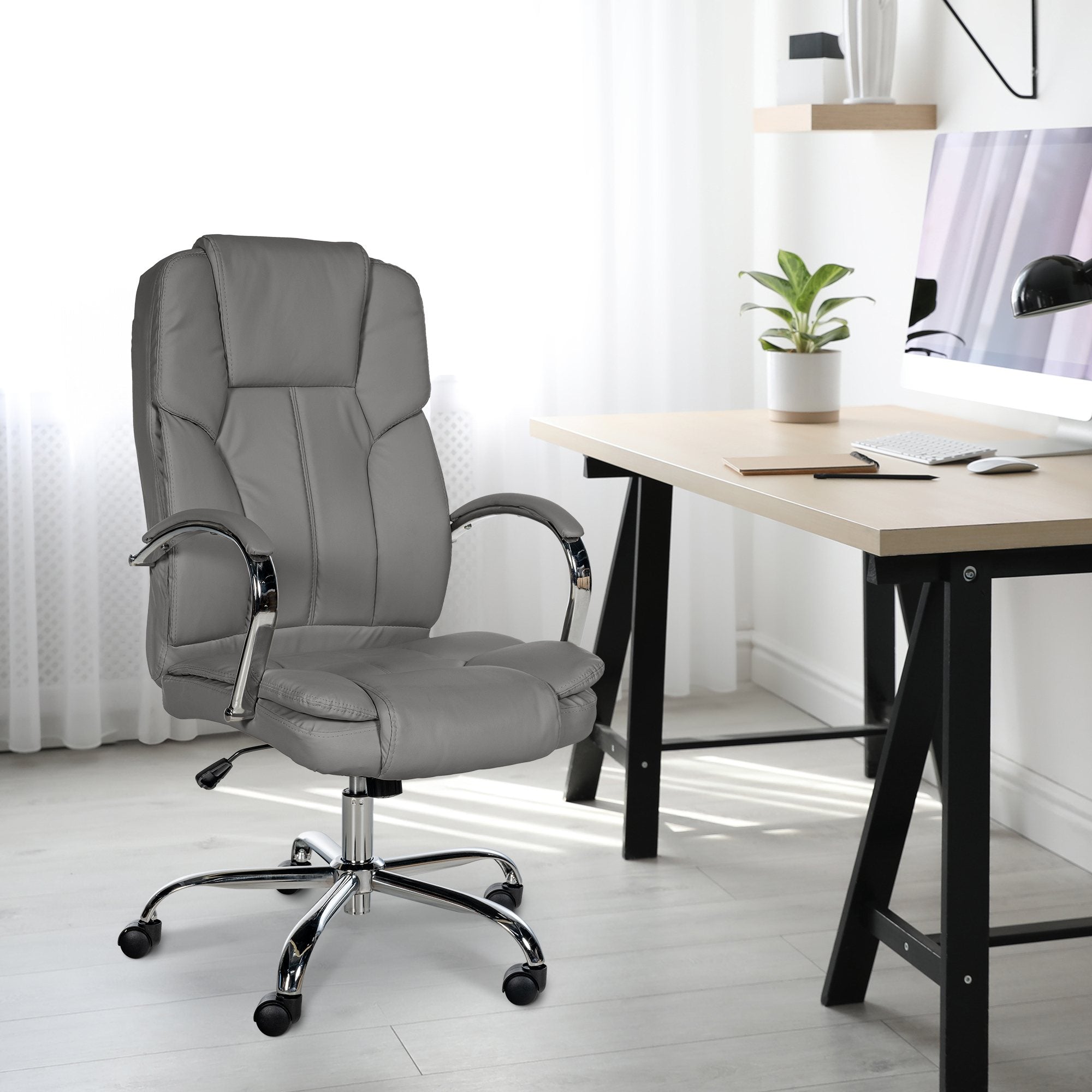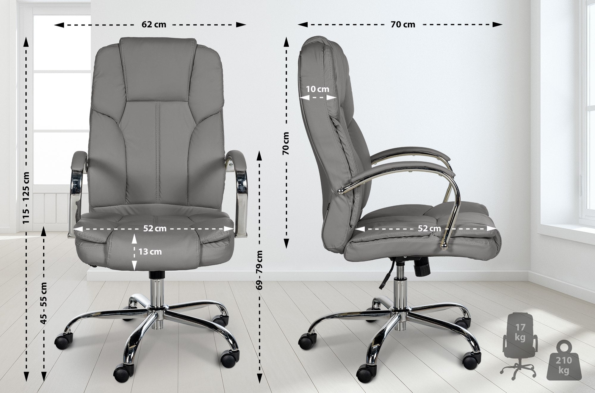 Fauteuil de bureau sur roulettes largeur d'assise XXL en PVC gris et métal chromé 10_0002418
