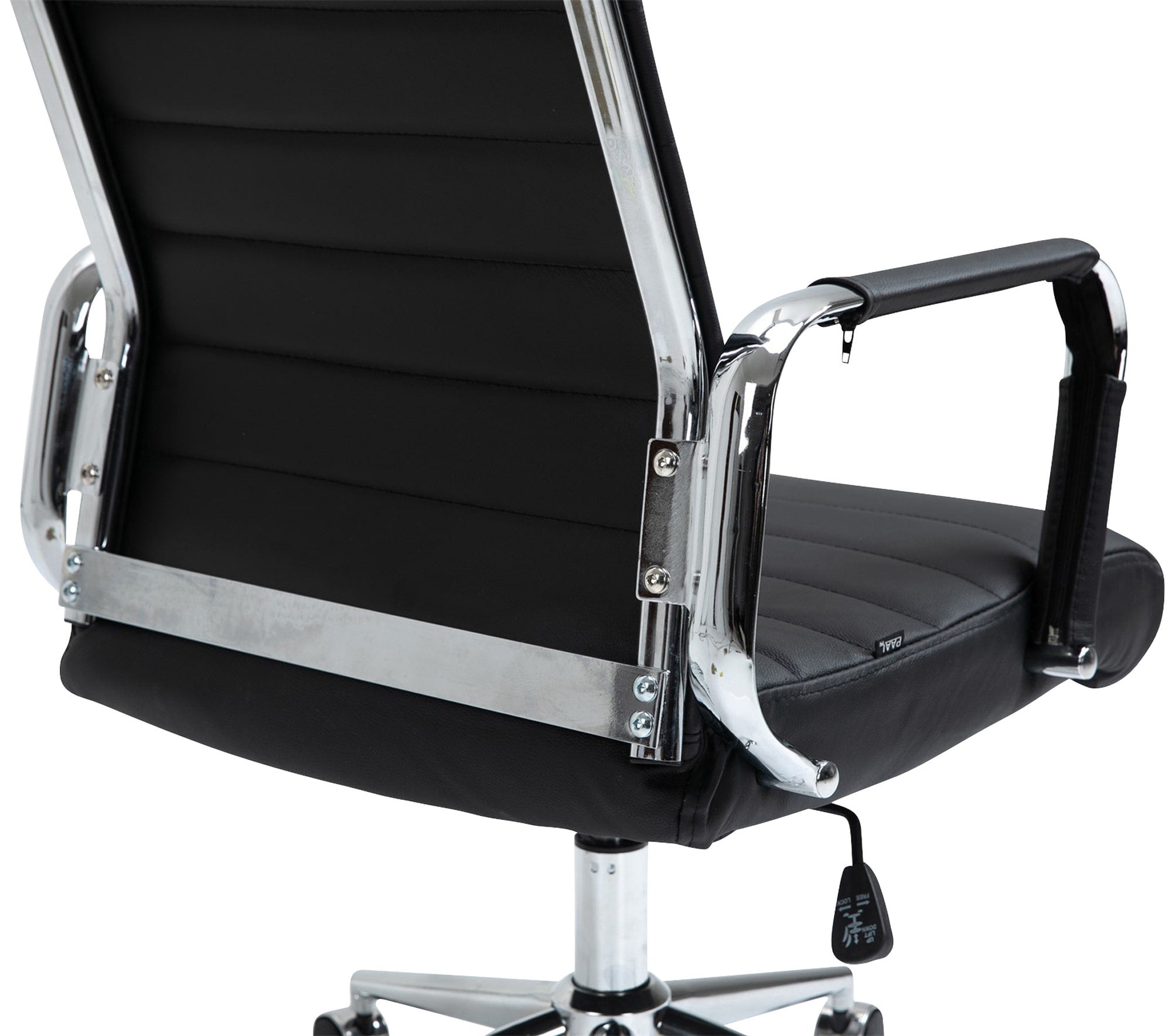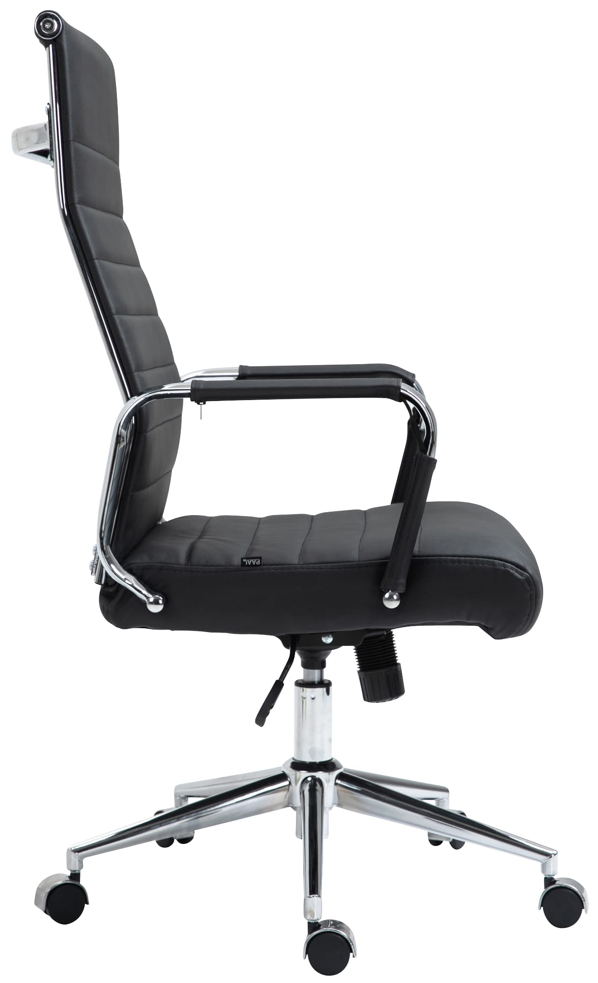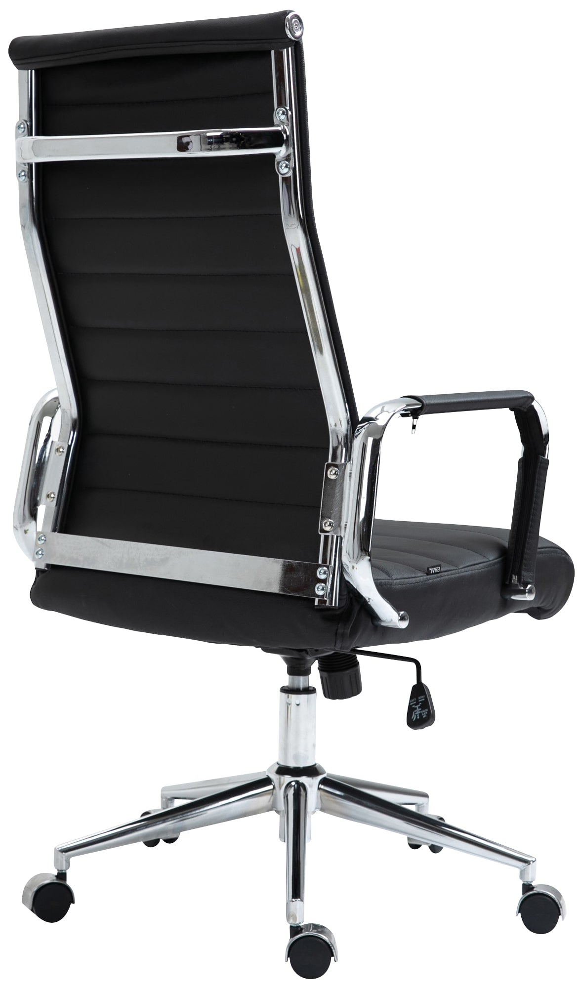 Le mécanisme à bascule intégré au siège renforce la liberté de mouvement qu'offre cette chaise de bureau qui repose sur un support en métal aspect chromé muni de 5 roulettes légères adaptables à tout type de sol. La chaise est également dotée d'accoudoirs partiellement revêtus de véritable cuir.