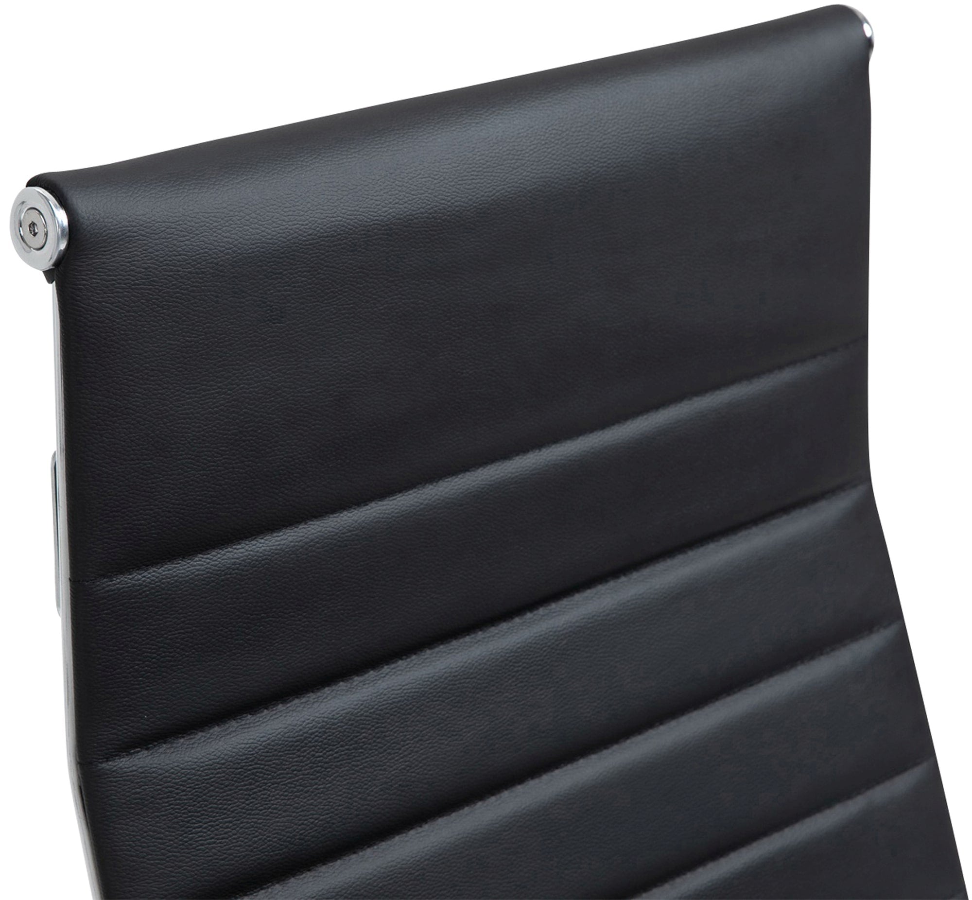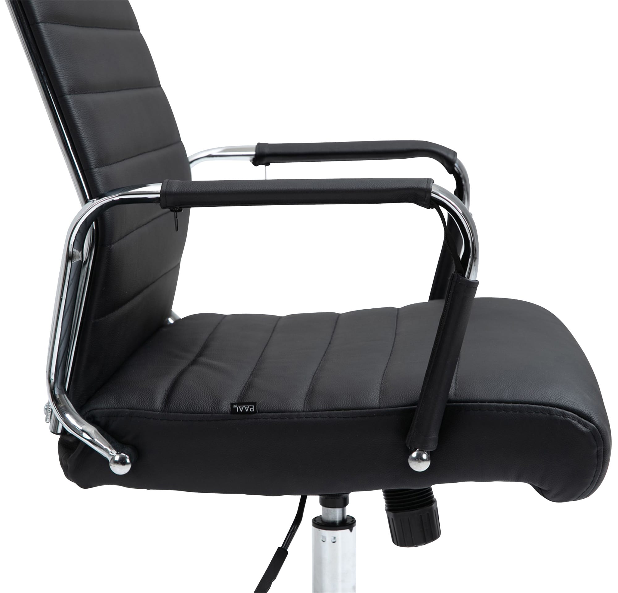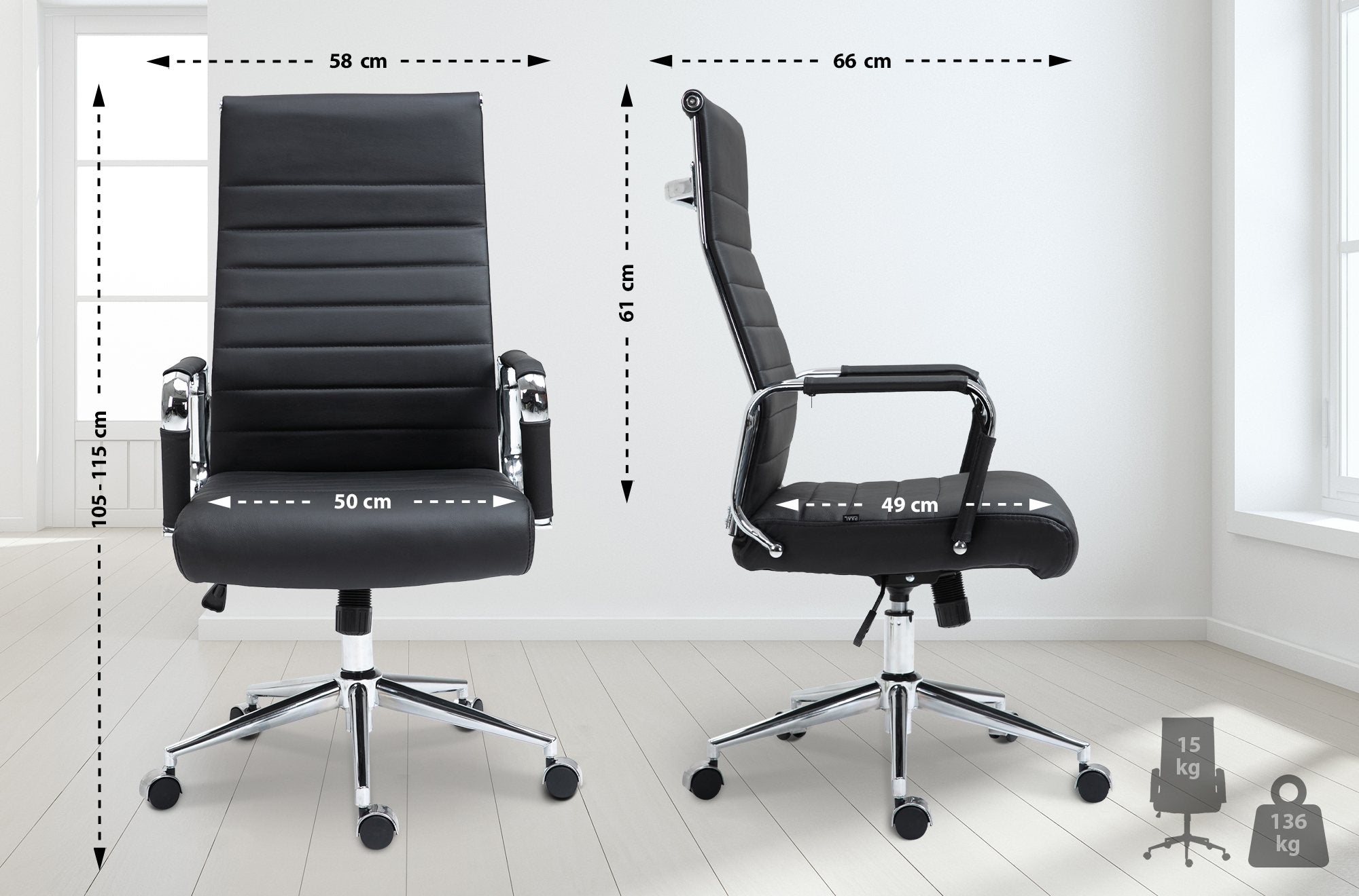 Le mécanisme à bascule intégré au siège renforce la liberté de mouvement qu'offre cette chaise de bureau qui repose sur un support en métal aspect chromé muni de 5 roulettes légères adaptables à tout type de sol. La chaise est également dotée d'accoudoirs partiellement revêtus de véritable cuir.