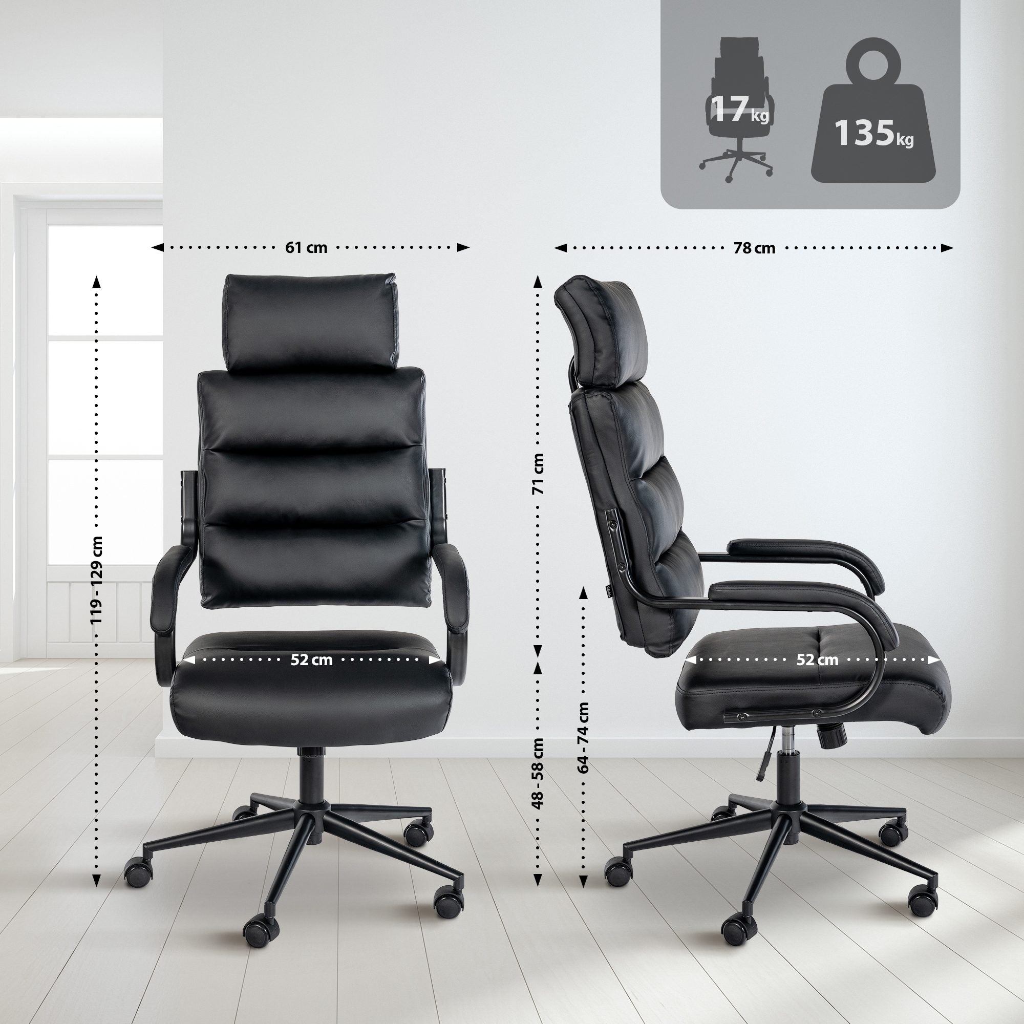 Avec sa grande stabilité et son assise confortable, la chaise de bureau impressionne au bureau, au bureau et à la maison. Grâce à sa structure stable, cette chaise de bureau ergonomique peut supporter une charge allant jusqu'à 135 kg.