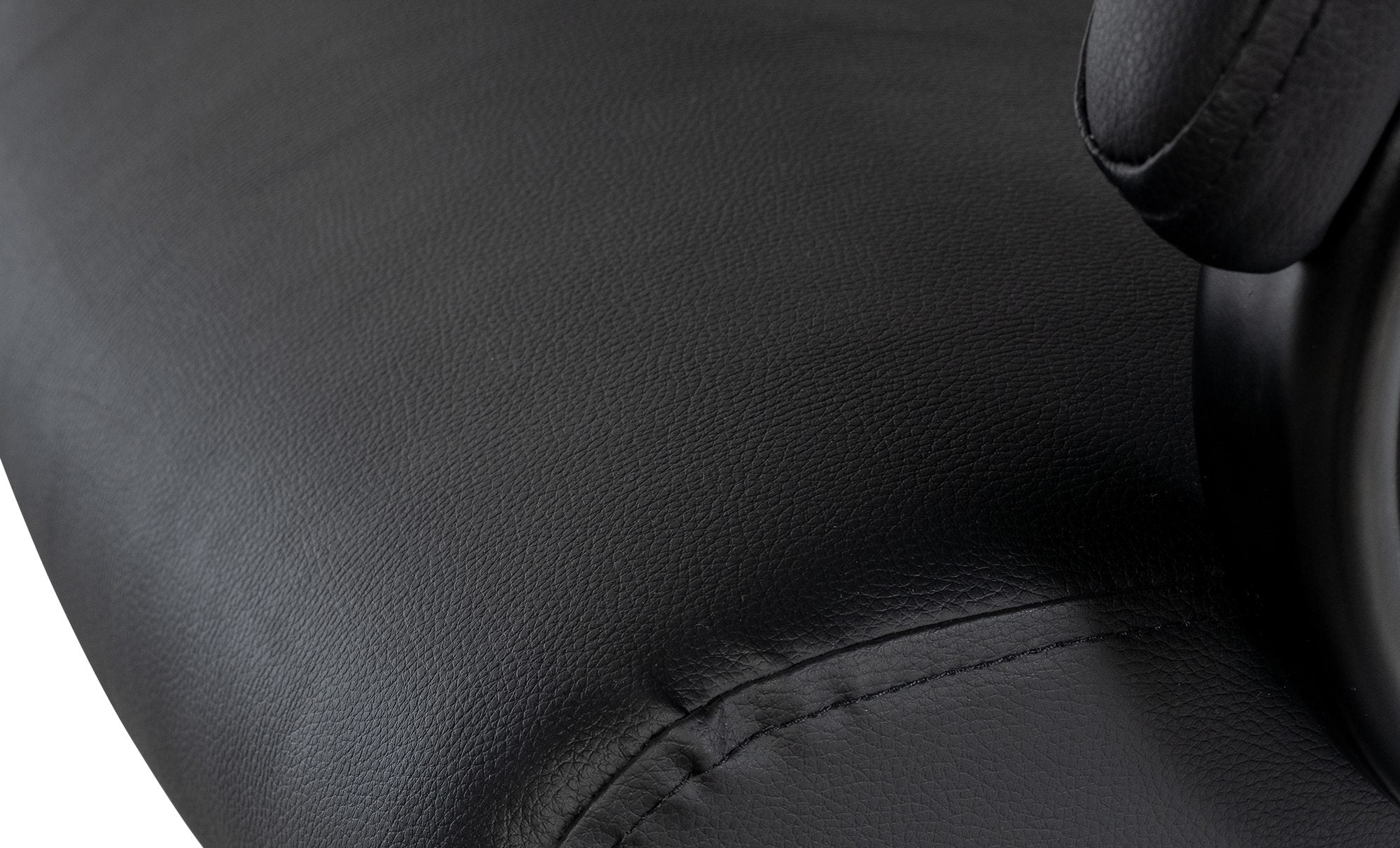 Le rembourrage épais de l'assise, du dossier, de l'appuie-tête et des accoudoirs assure une assise confortable et durable. La chaise de bureau est inclinable. La tension du mécanisme d'inclinaison peut être réglée individuellement grâce à la manivelle située sous l'assise.