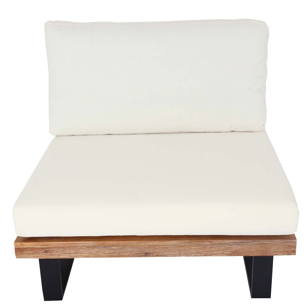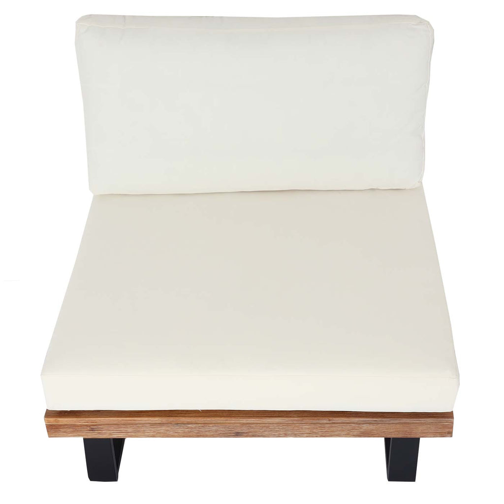 Fauteuil lounge de jardin en bois d'acacia marron clair et aluminium coussin blanc crème 04_0006843