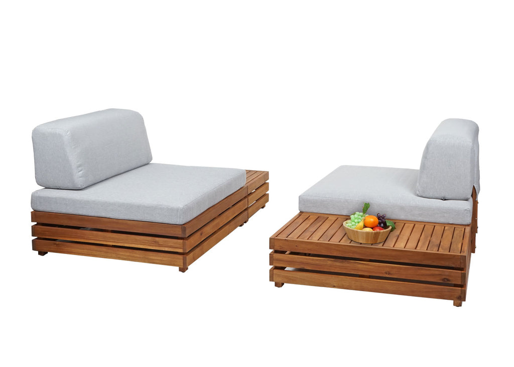 Ensemble de jardin 2 fauteuils avec rembourrage et 2 tables en bois d'acacia revêtement gris clair 04_0006691