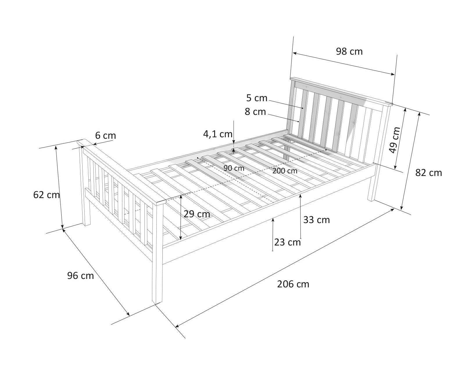 Lit pour enfant 90x200cm avec sommier à lattes en bois blanc LIT06081
