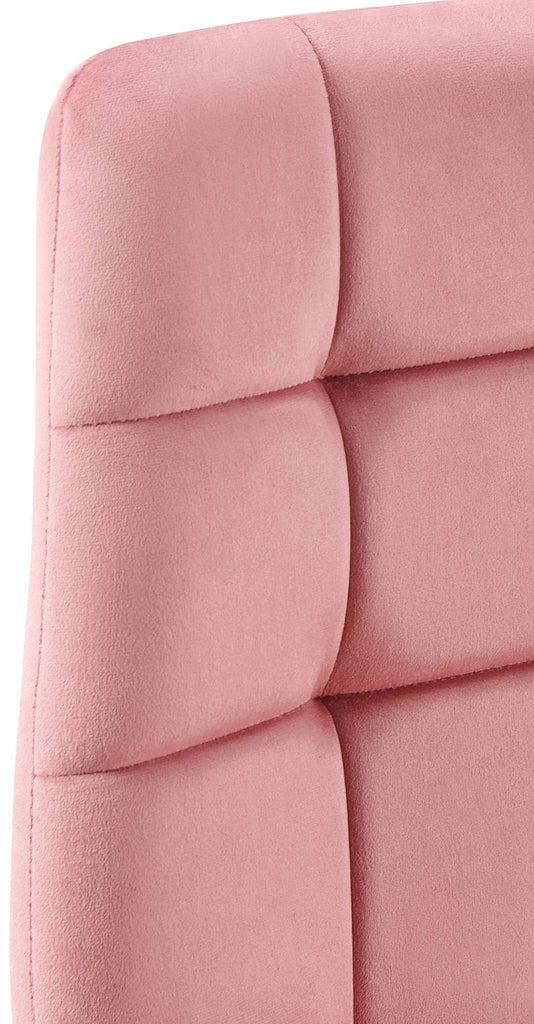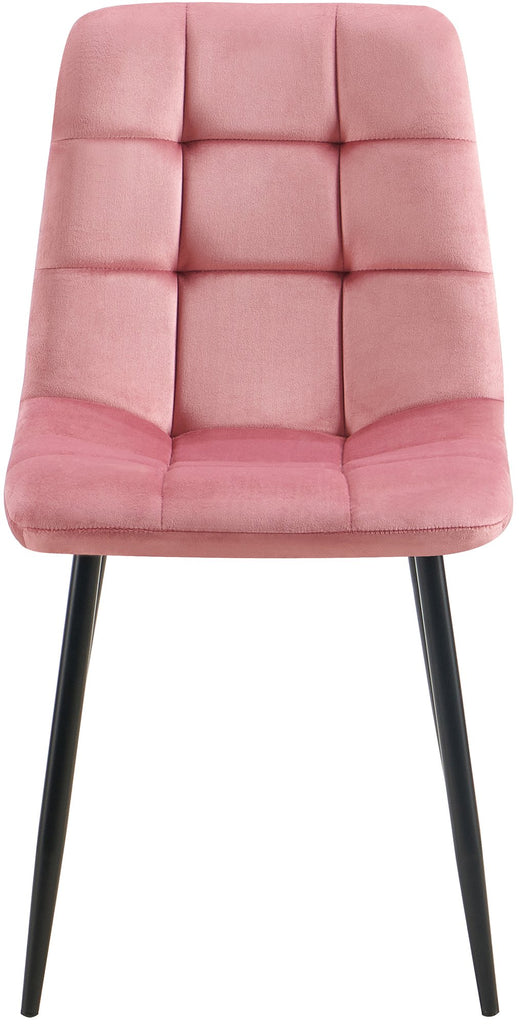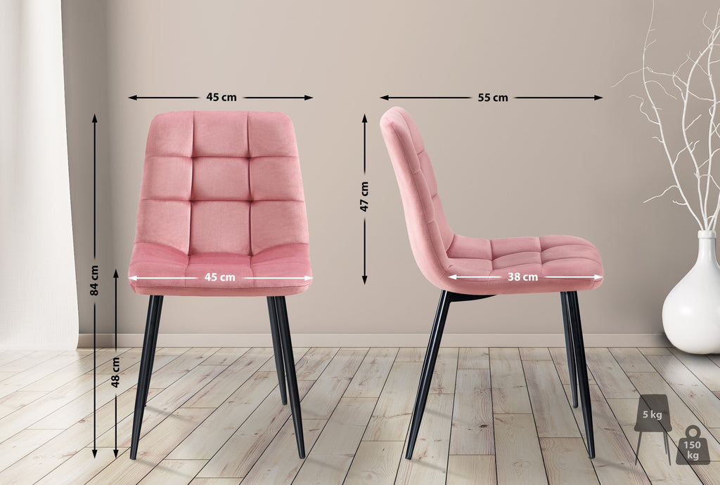 Chaise de salle à manger x1 coutures forme carrées en velours rose pieds en métal noir 10_0001970