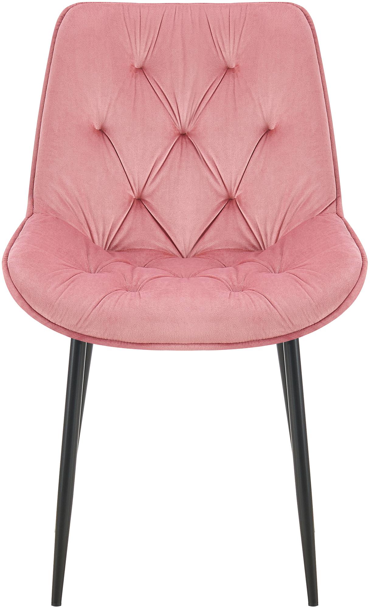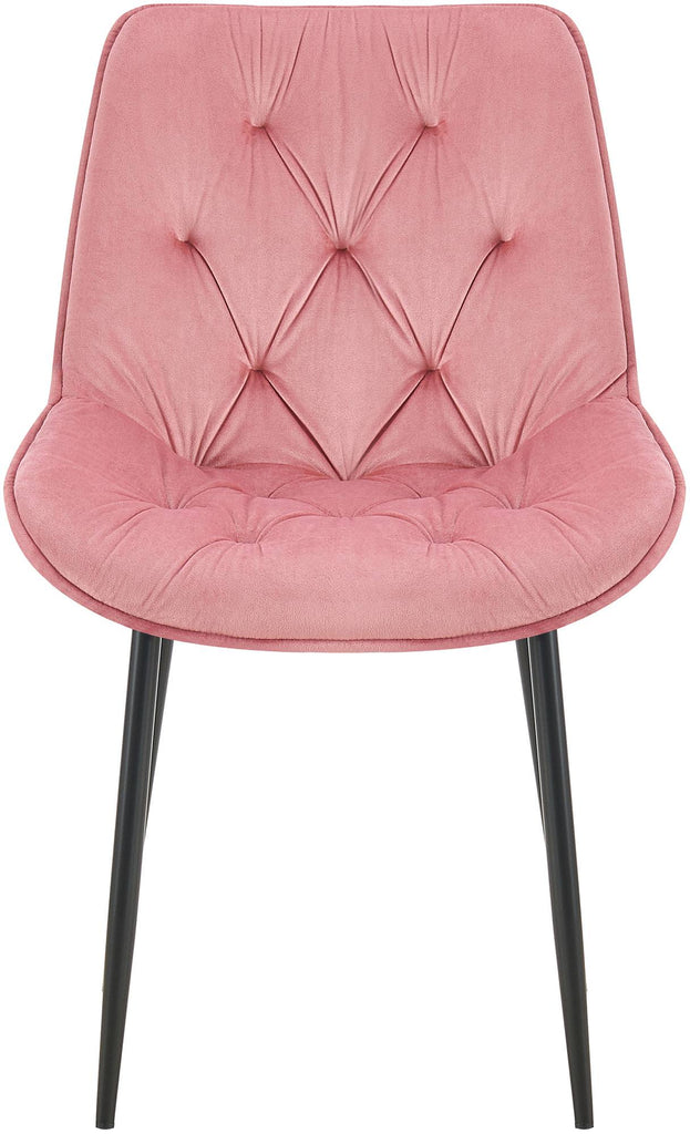 Lot de 2 chaises de salle à manger assise et dossier capitonné en velours rose et métal noir 10_0007459