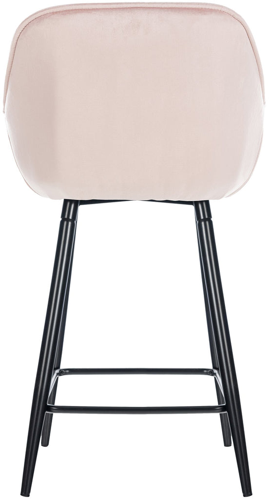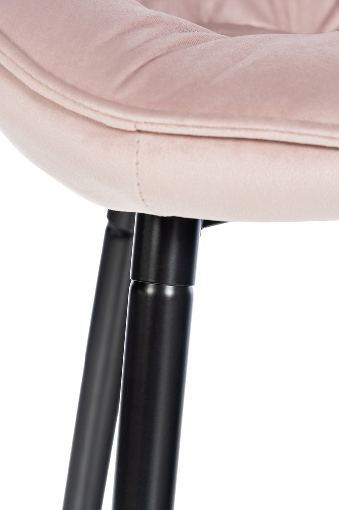Lot de 2 tabourets de bar moderne en velours rose assise enveloppante capitonnée pieds métal noir 10_0006662