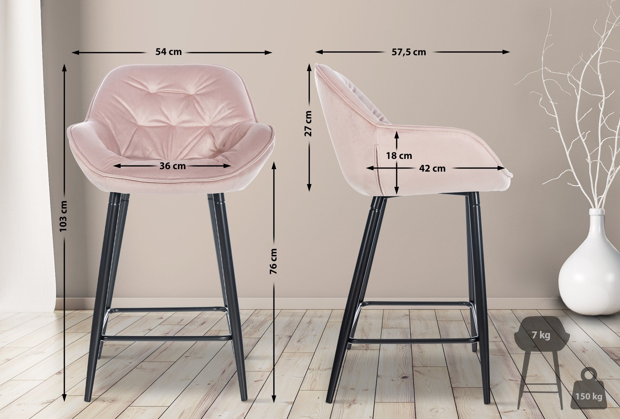 Les tabourets de bar allient design moderne, confort haut de gamme et fonctionnalité. Les coques d'assise et les dossiers rembourrés offrent une expérience d'assise exceptionnelle tout en soulageant la pression sur le bas du dos. L'association réussie d'un cadre noir mat et d'un revêtement en velours matelassé tendance, disponible en plusieurs coloris, confère aux tabourets un aspect attrayant et leur permet d'ajouter une touche d'élégance à n'importe quelle pièce.