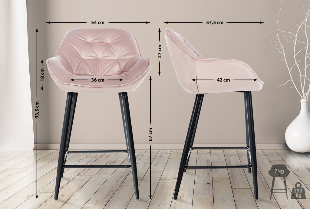 Tabouret de bar x1 moderne en velours rose assise enveloppante capitonnée pieds métal noir 10_0005783