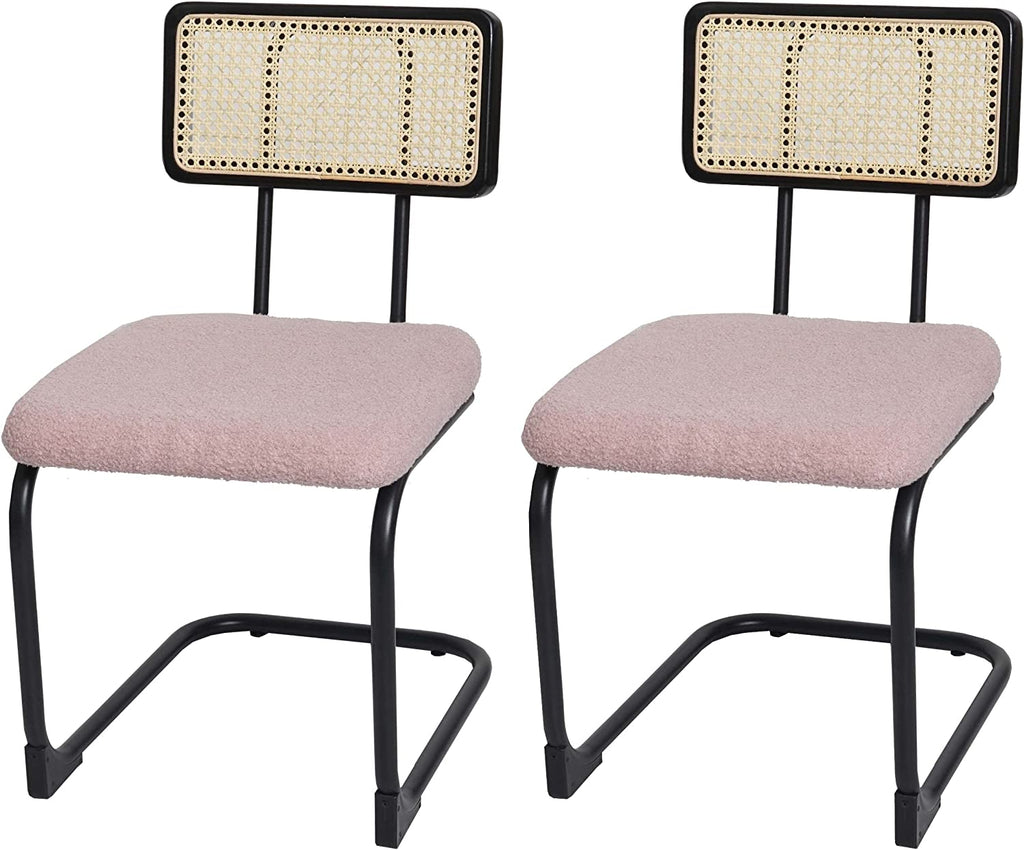 Lot de 2 chaises de salle à manger cuisine en bois rotin métal tissu/textile rose bouclé CDS04491