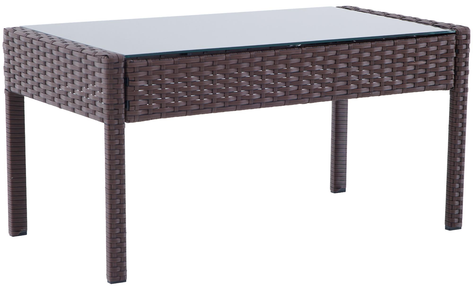 Ensemble salon de jardin extérieur 4 places en résine tressée marron avec table basse et coussins 10_0007923