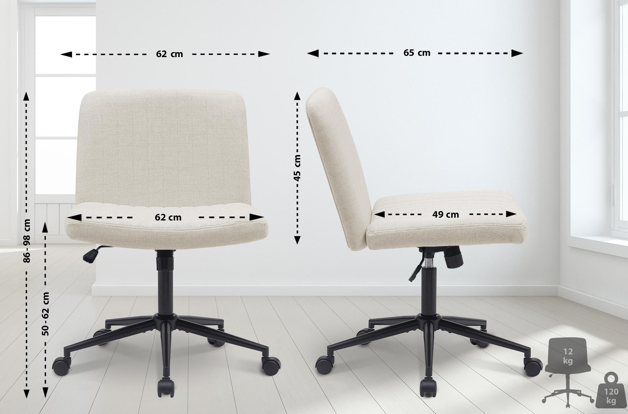 Chaise de bureau contemporaine surpiqûres verticale en tissu crème réglable en hauteur et rotatif à 360 degrés 10_0006993