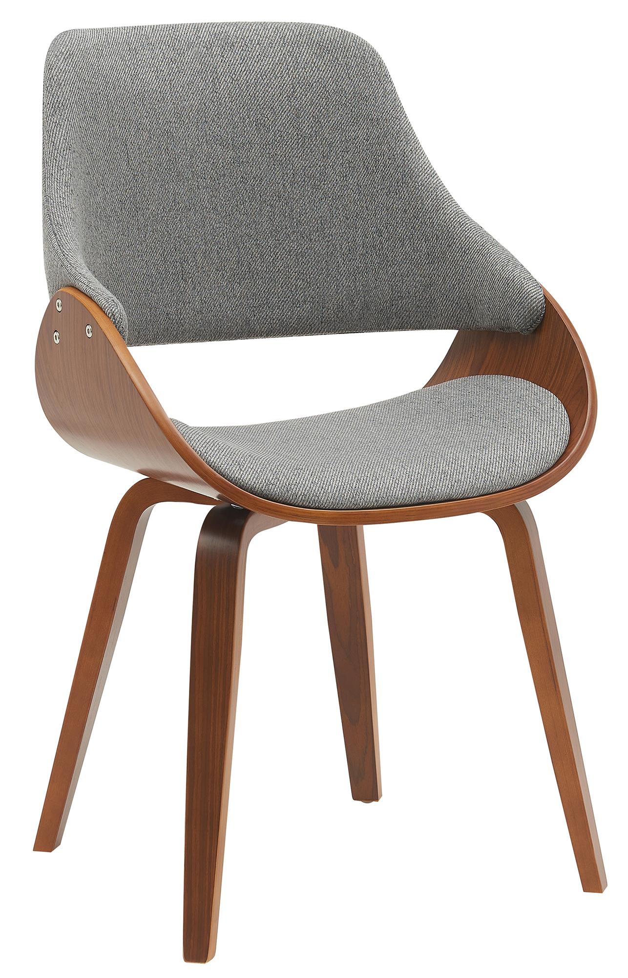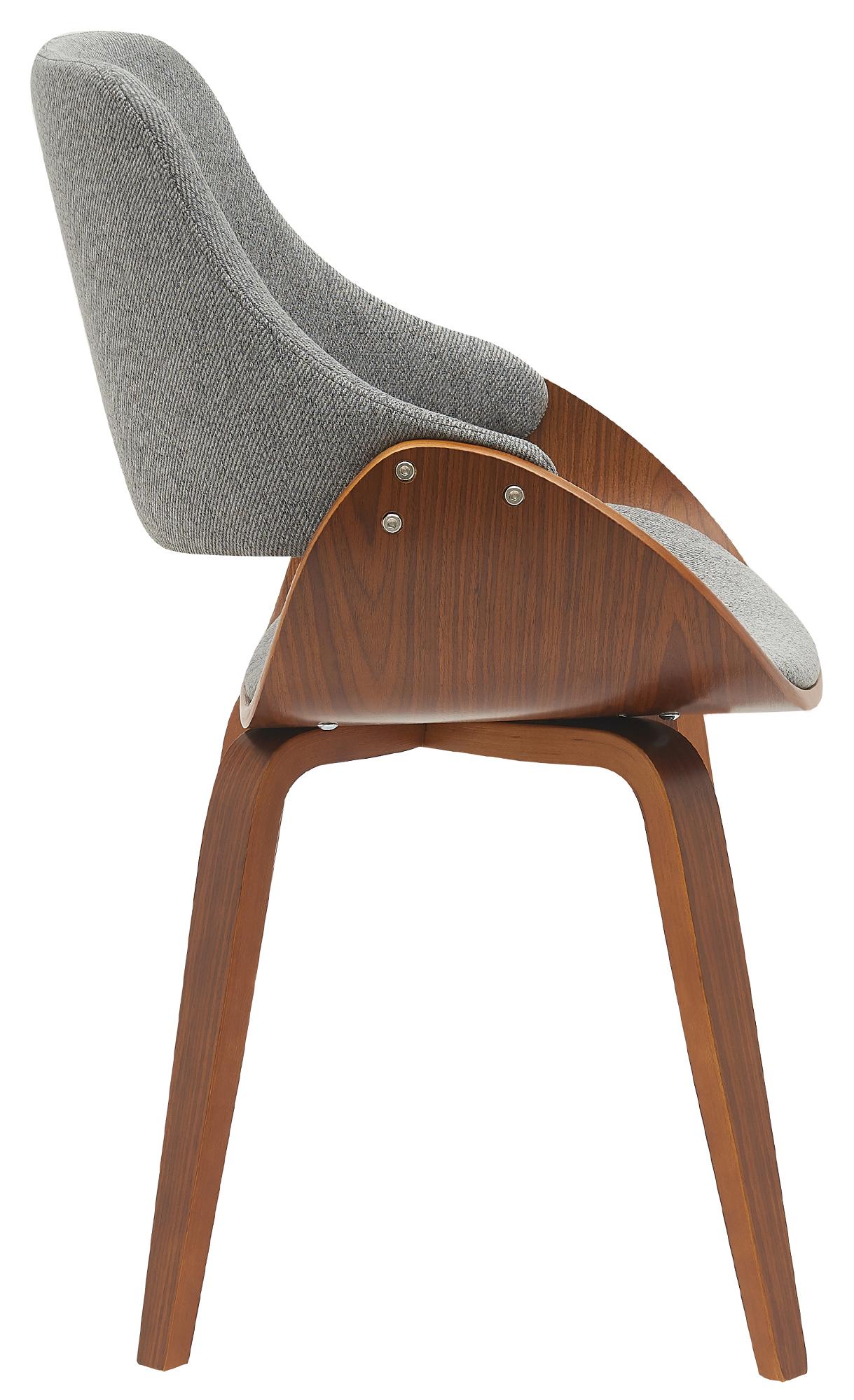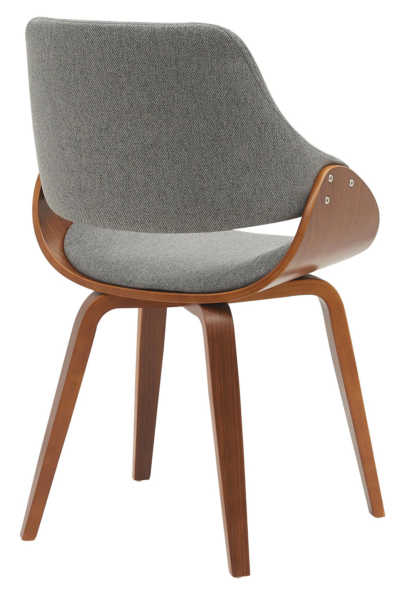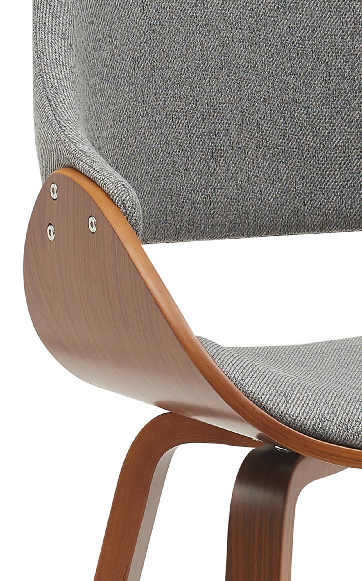 Chaise de salle à manger x1 design scandinave en bois courbé couleur noyer et tissu gris 10_0007707
