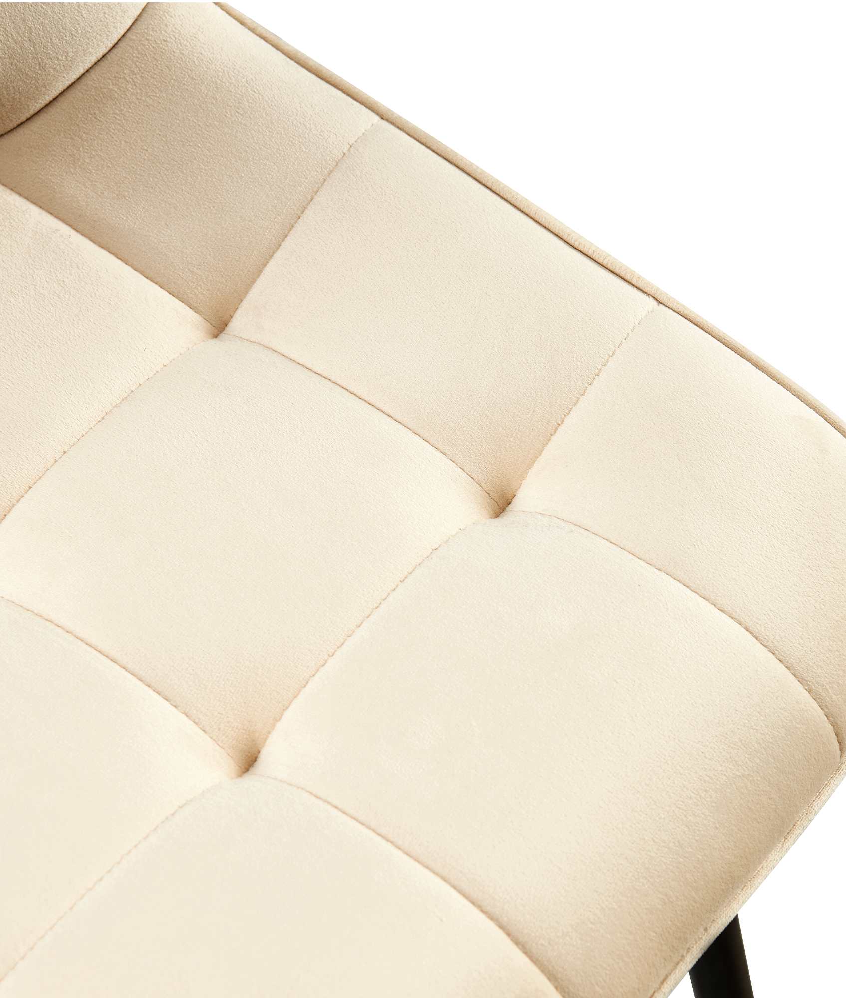 Chaise de salle à manger x1 coutures décoratives carrées en velours crème cadre métal noir 10_0007199