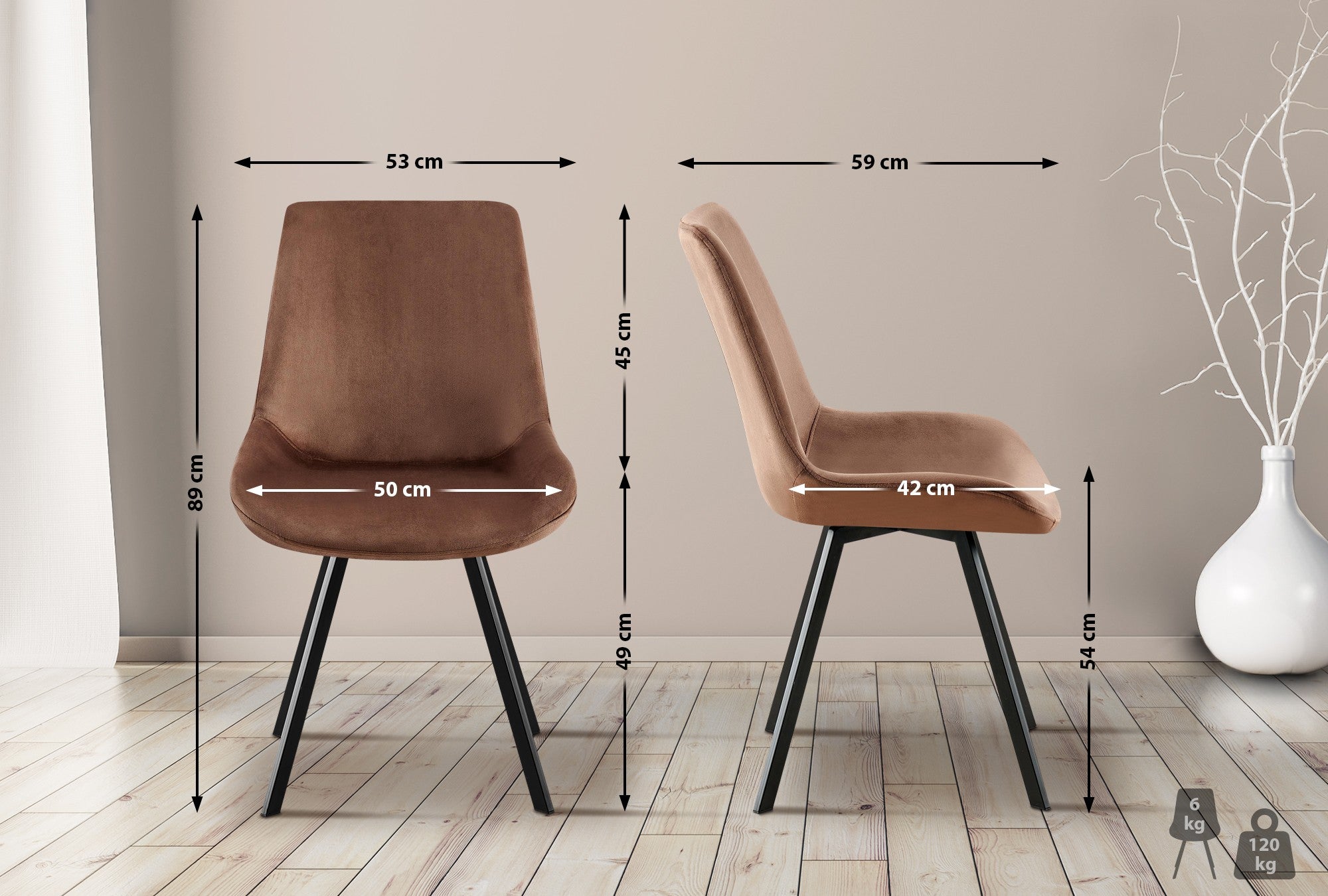 Chaise de salle à manger x1 pivotant à 360 degrés en velours marron cadre en métal noir 10_0007730