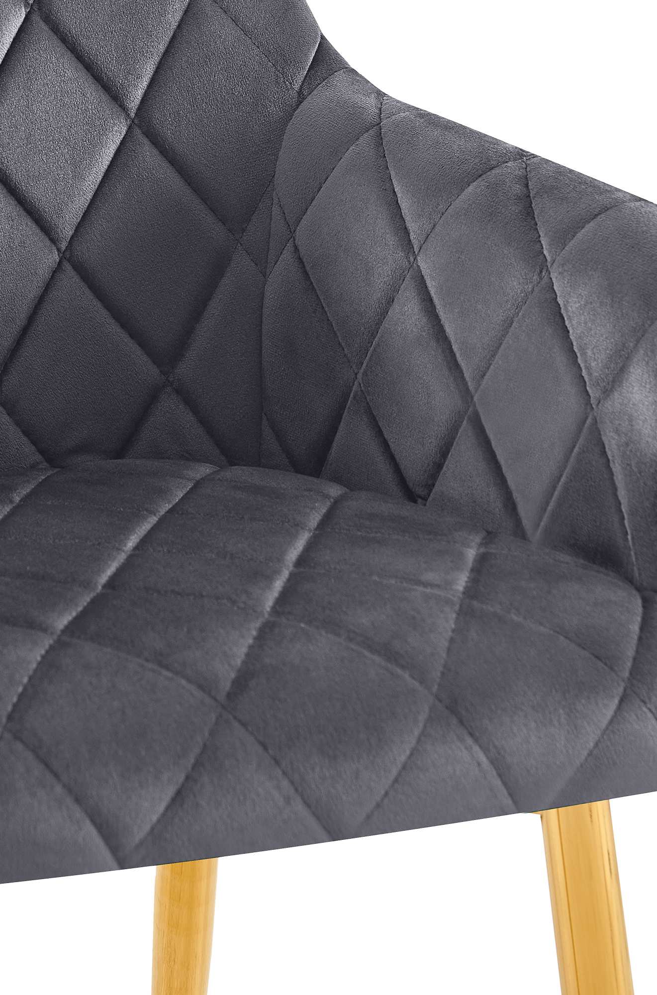 Chaise de salle à manger x1 en velours gris foncé avec coutures décoratives en losange chic et contemporain 10_0007830