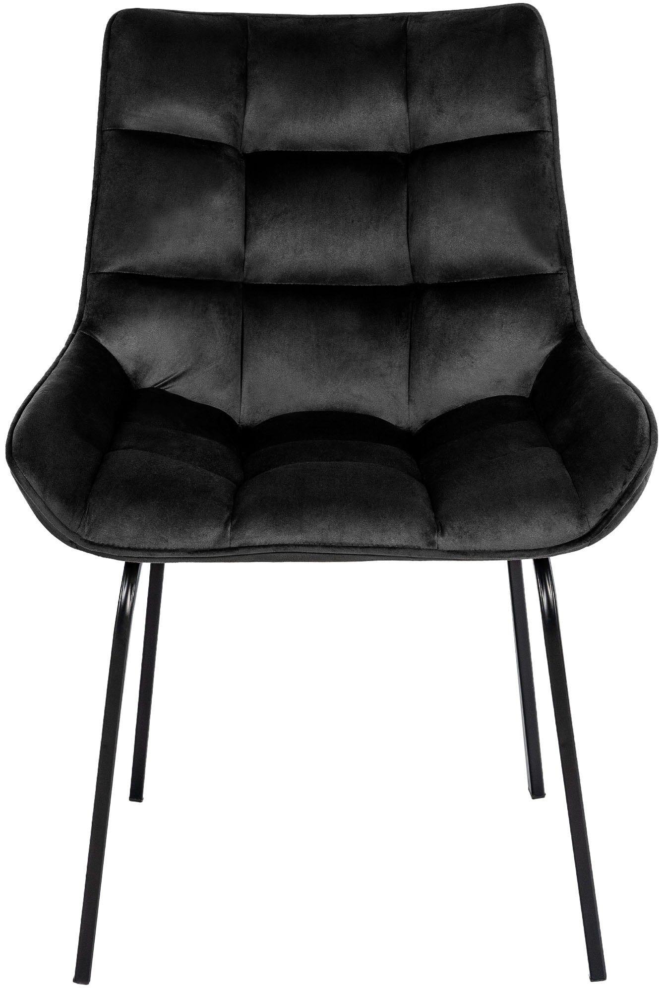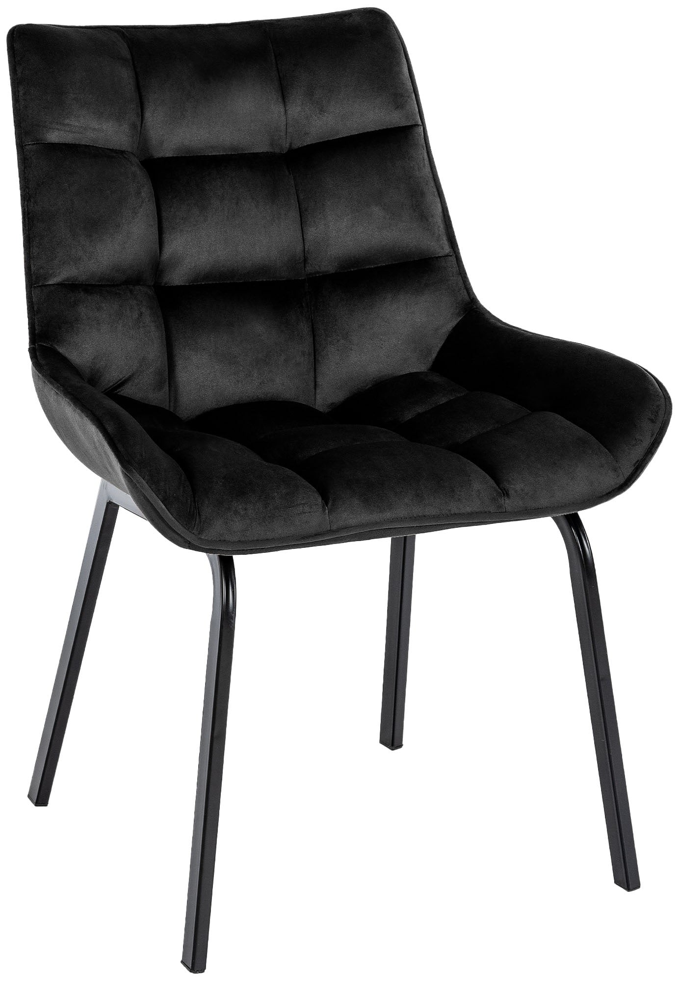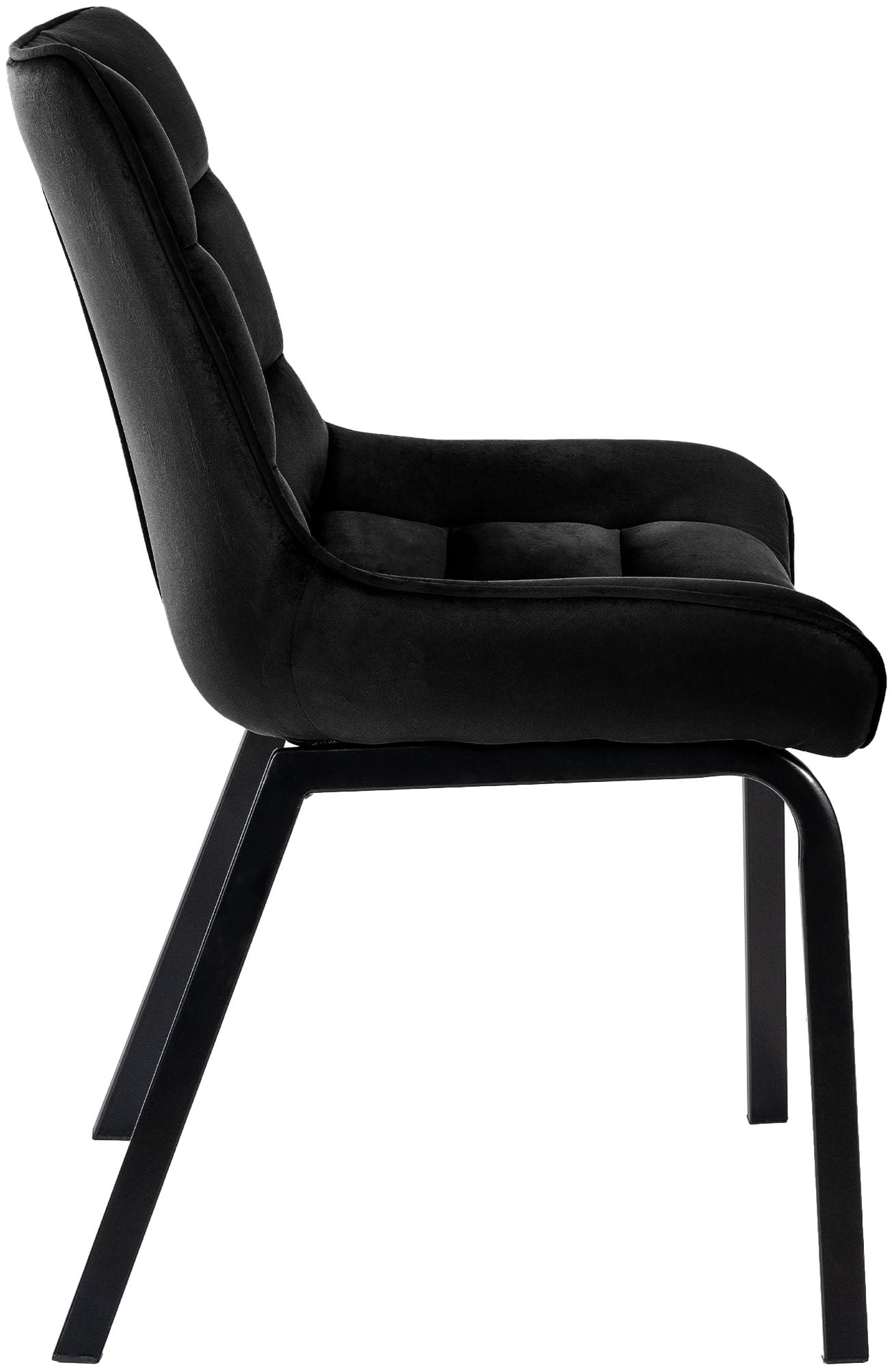 Chaise de salle à manger x1 en velours noir généreusement rembourrée piètement en métal noir 10_0007287
