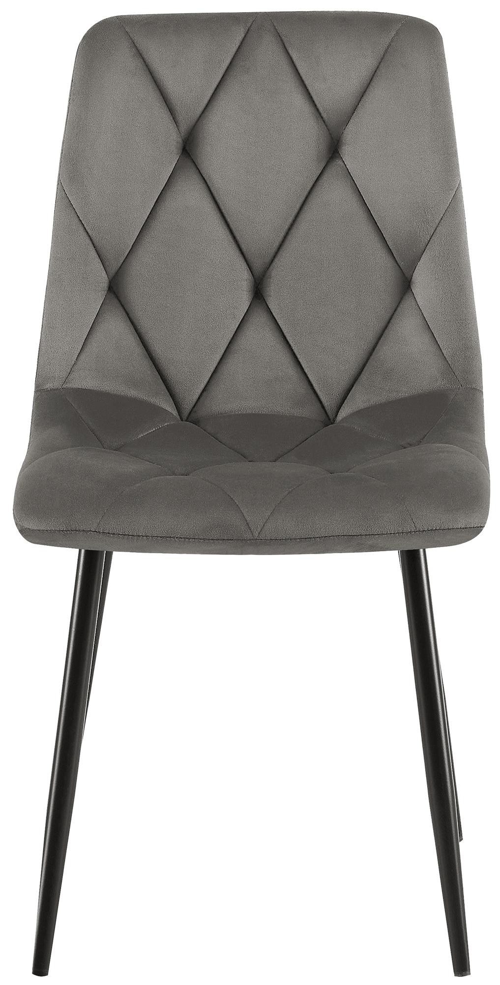 Lot de 2 chaises de salle à manger design moderne surpiqûres en losange velours anthracite et cadre métal noir 10_0007314