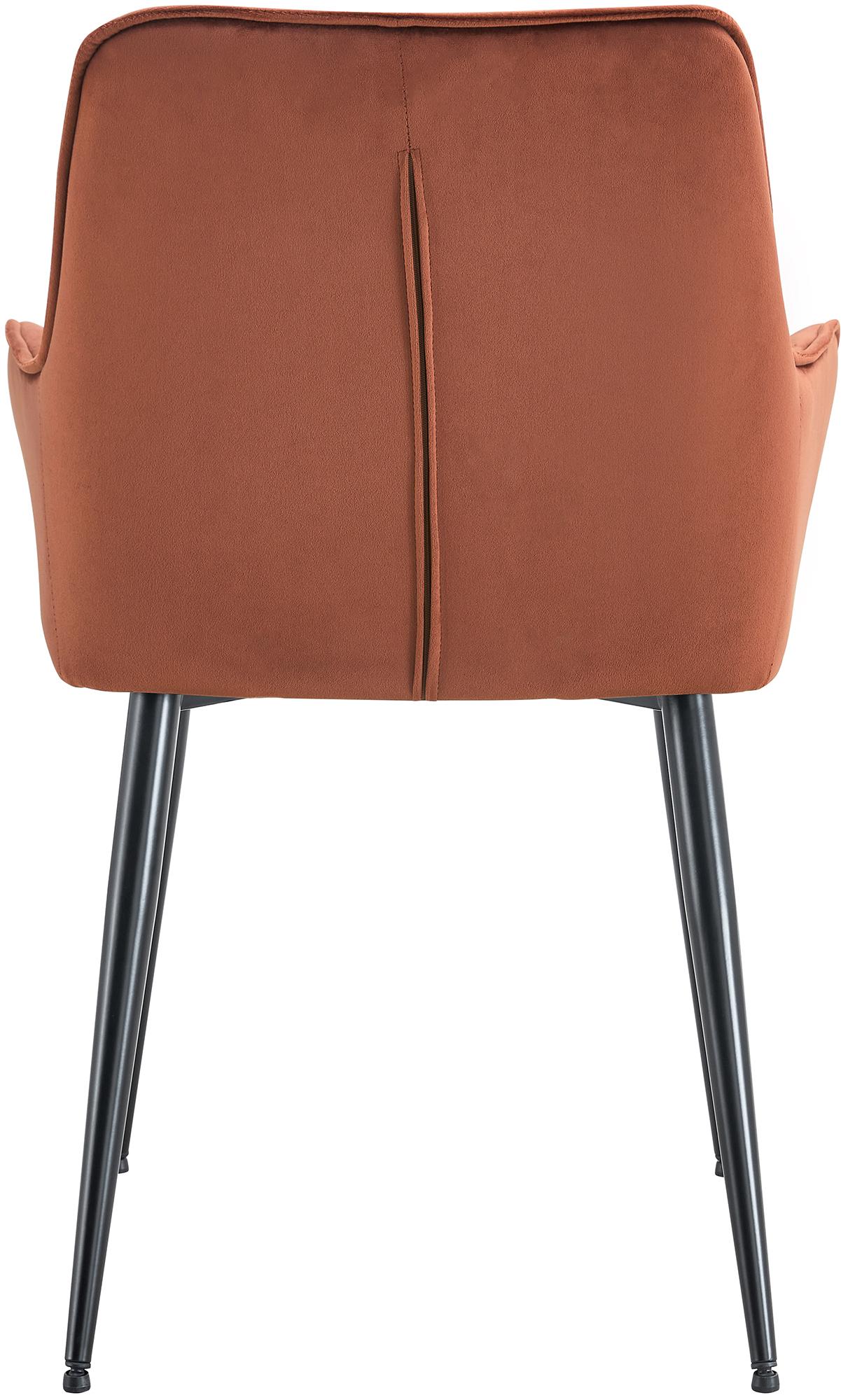 Cette chaise de salle à manger allie design moderne et fonctionnalité confortable. L'assise et les accoudoirs rembourrés offrent un soutien confortable. Le revêtement en velours facile d'entretien lui confère une allure élégante, tandis que la structure métallique robuste avec patins de protection protège le sol des rayures et empêche les glissements. Avec une capacité de charge allant jusqu'à 150 kg et une forme ergonomique, cette chaise est idéale pour les longues périodes assises. Cette chaise s'intègre harmonieusement dans une variété de styles d'intérieur - parfaite pour la salle à manger, la chambre ou comme chaise de lecture.