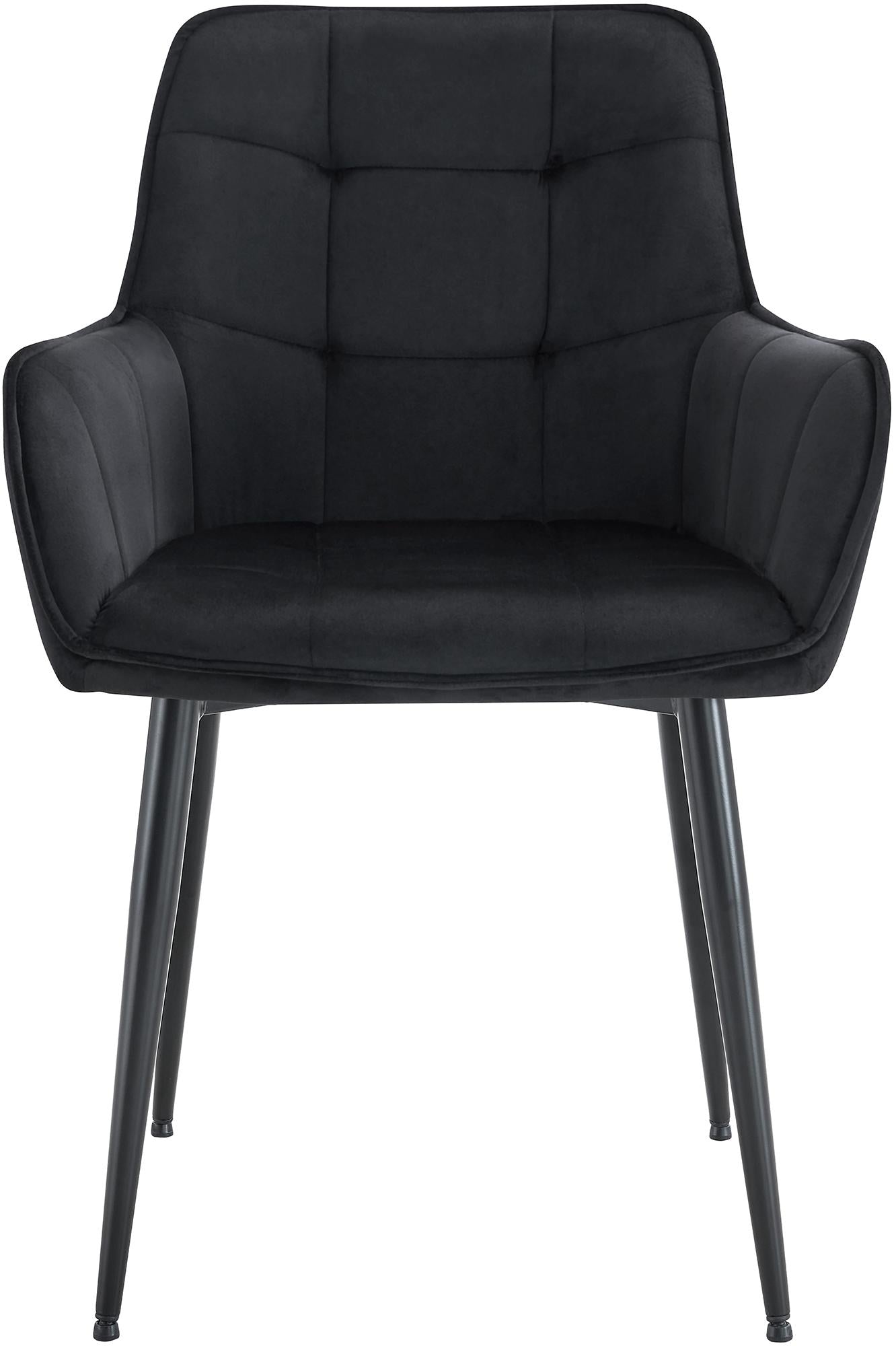 Lot de 2 chaises de salle à manger avec accoudoirs en velours noir capitonné cadre métal noir 10_0007564