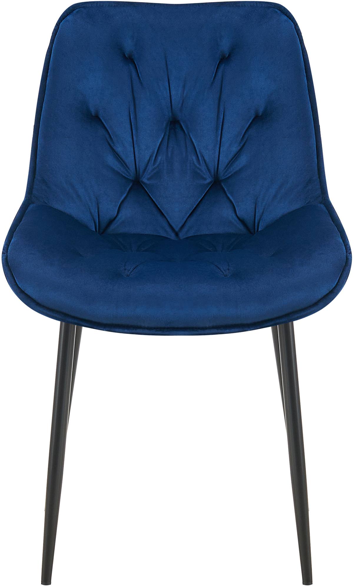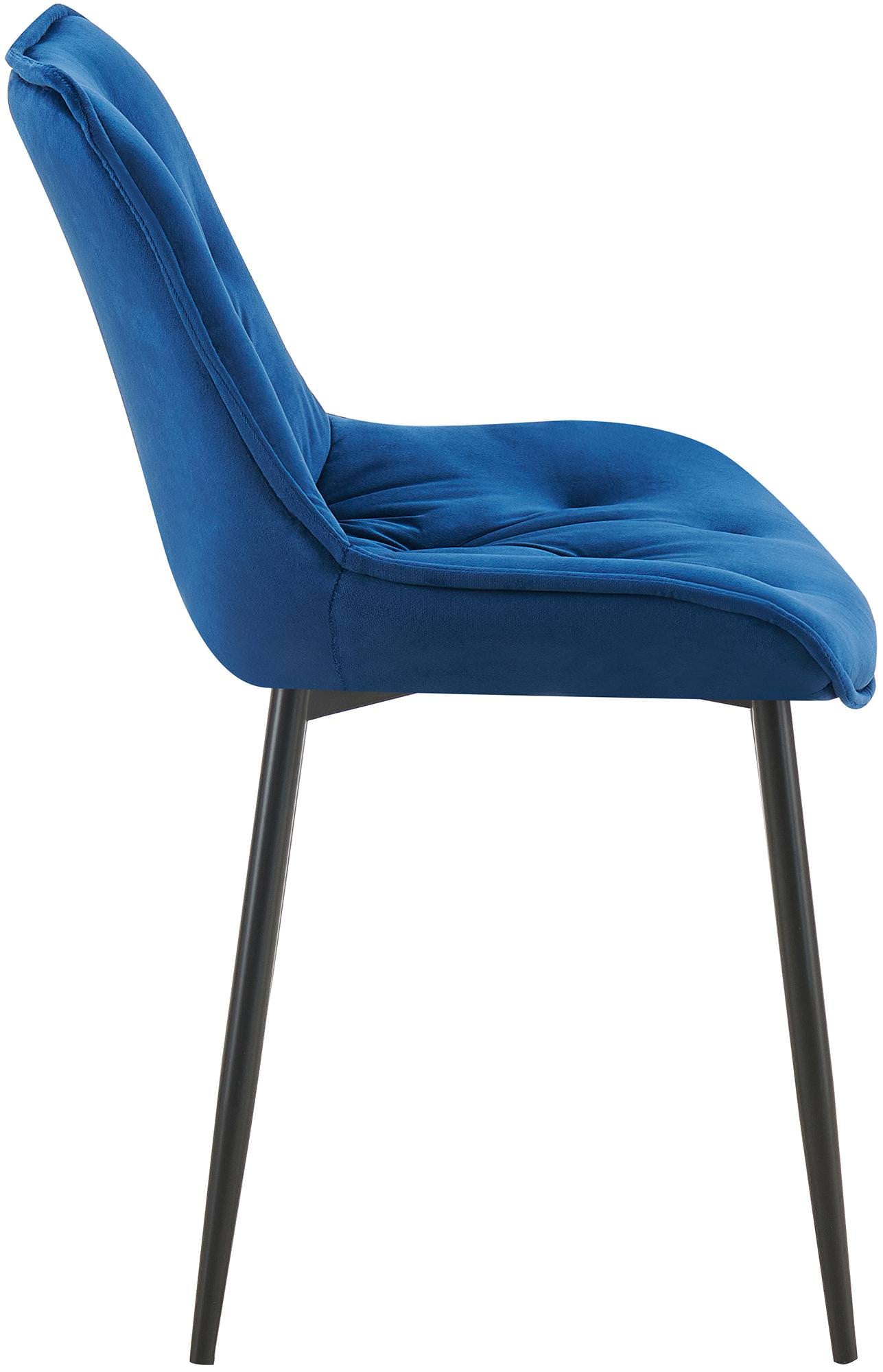 Lot de 2 chaises de salle à manger assise et dossier capitonné en velours bleu et métal noir 10_0007320