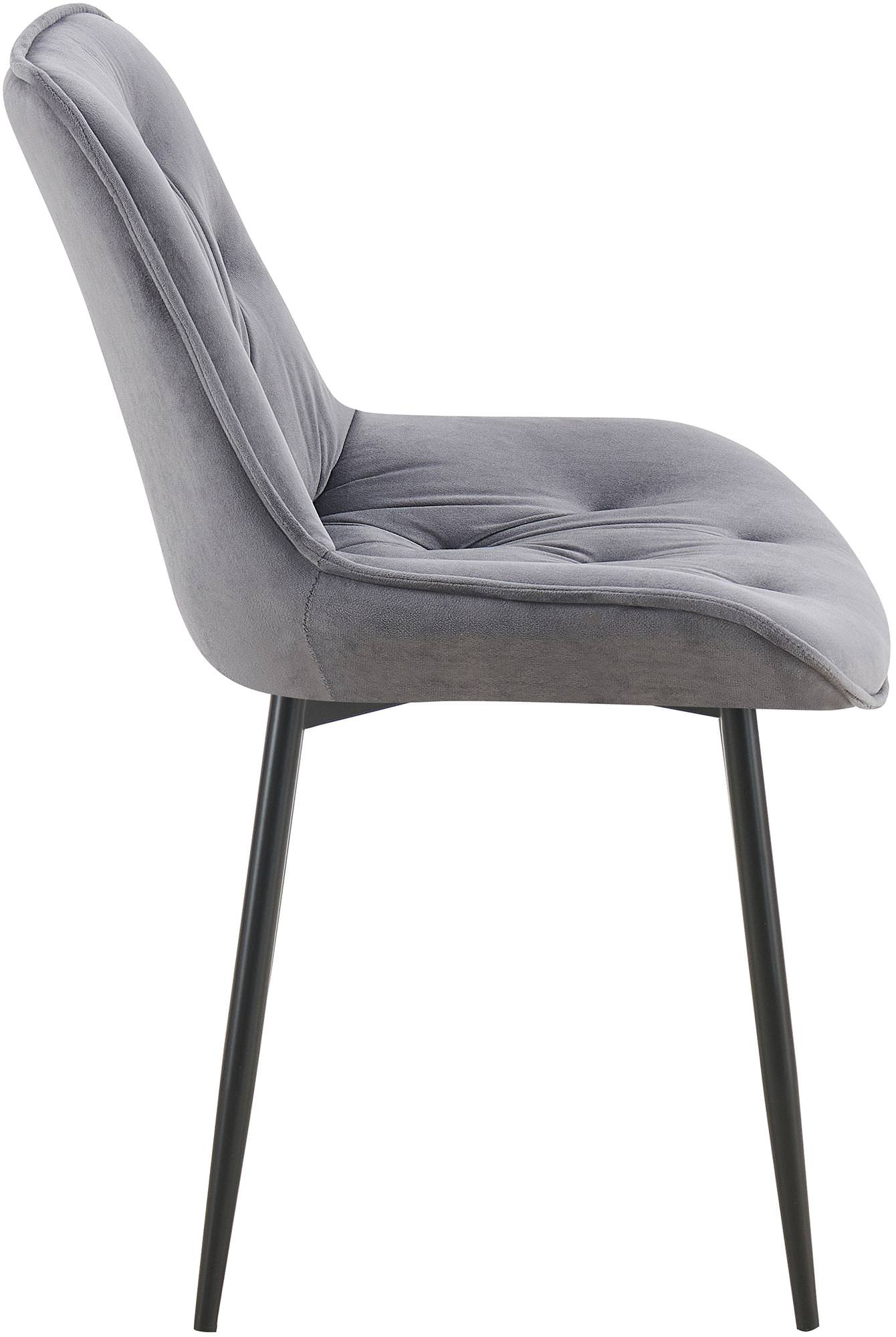 La chaise de salle à manger allie confort d'assise et style moderne. Cette chaise rembourrée est idéale pour votre table de salle à manger, votre cuisine, votre salon et bien plus encore. Le rembourrage agréable de l'assise et du dossier est essentiel pour un confort optimal. L'assise est recouverte de velours facile d'entretien avec un motif matelassé tendance. La base de cette chaise de salle à manger est un cadre stable à quatre pieds noir en métal robuste. Ainsi, la chaise de cuisine peut supporter en toute sécurité une charge allant jusqu'à 120 kg. Les patins de protection protègent les sols fragiles.