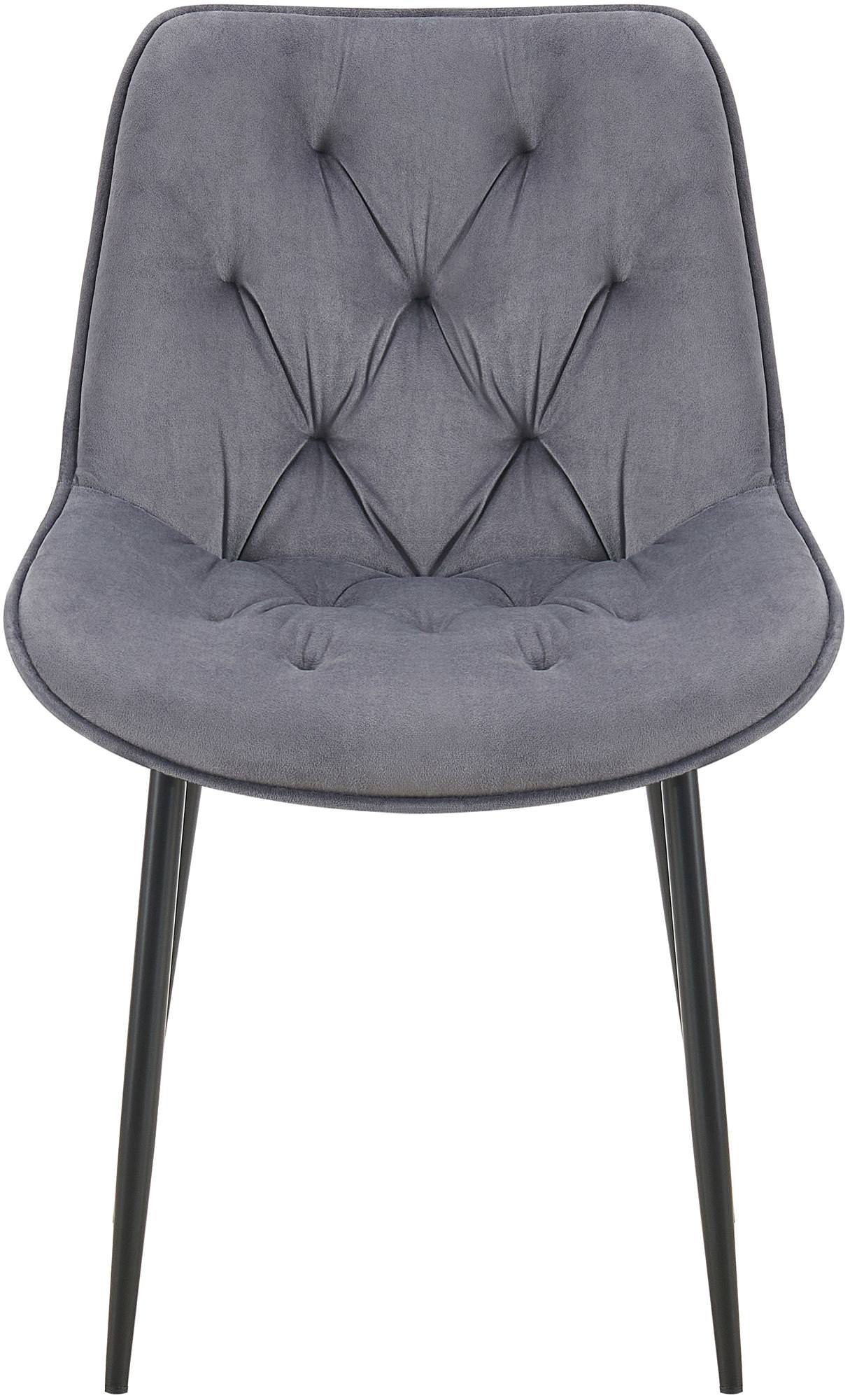 Lot de 2 chaises de salle à manger assise et dossier capitonné en velours gris foncé et métal noir 10_0007321