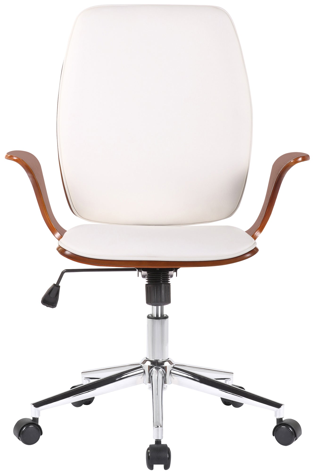 Fauteuil de bureau classique et confortable dossier ergonomique hauteur réglable en synthétique blanc bois et métal BUR10559