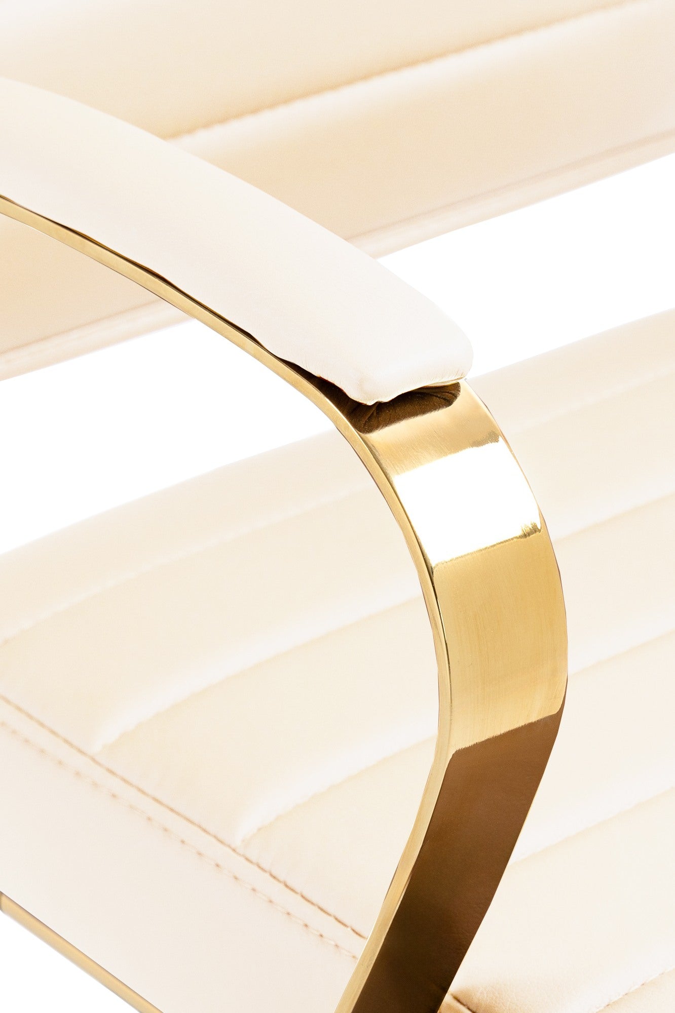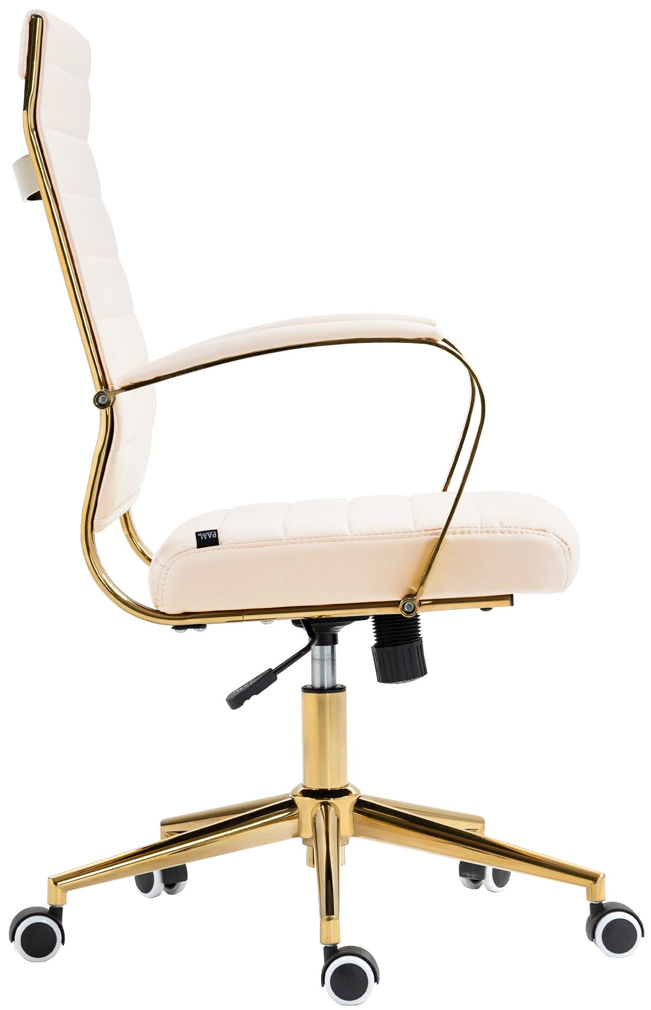 Fauteuil de bureau design chic dossier ergonomique en similicuir crème cadre métal doré BUR10711