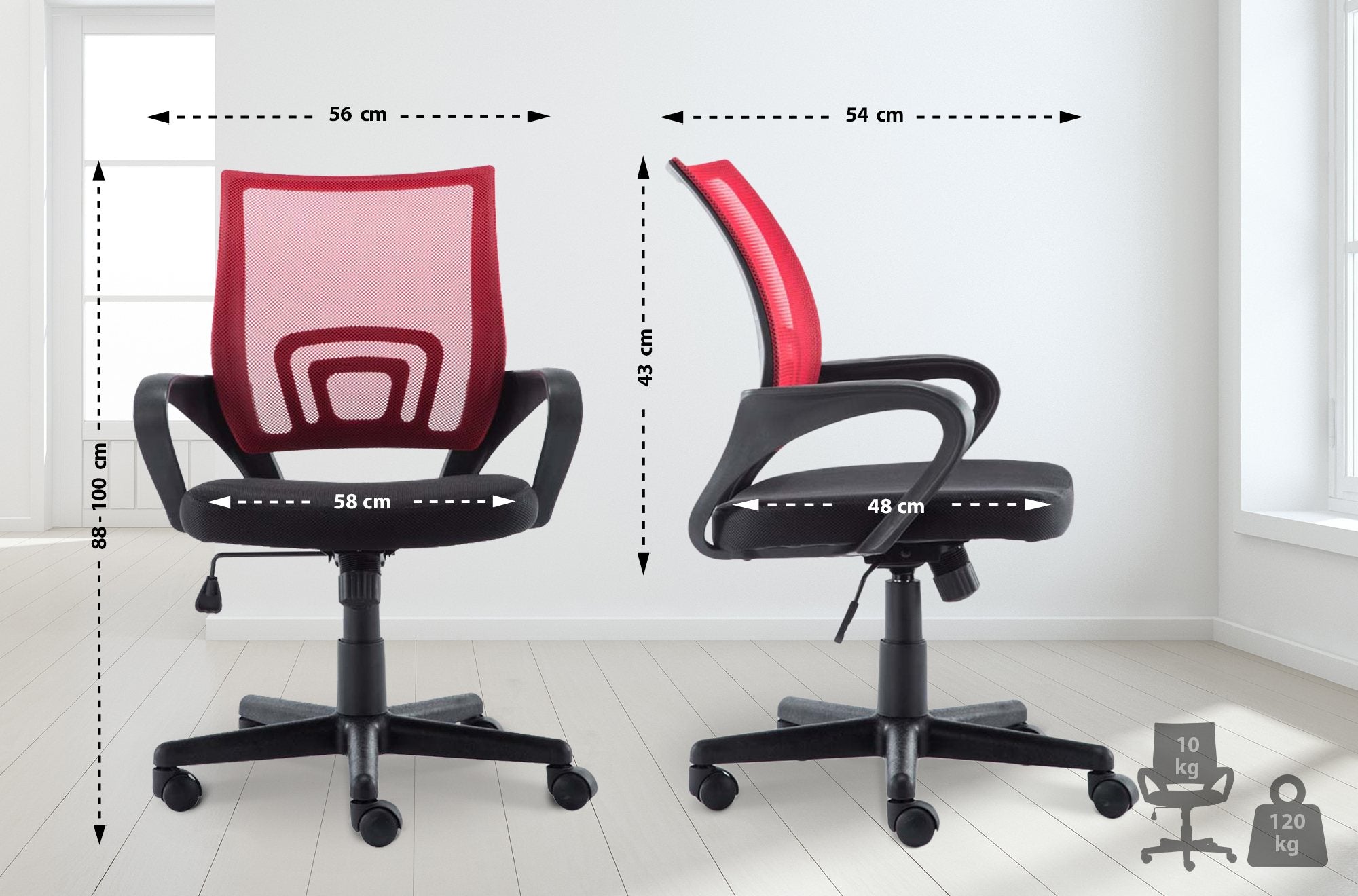 Fauteuil de bureau sur roulettes hauteur réglable en maille de filet de nylon rouge 10_0002498