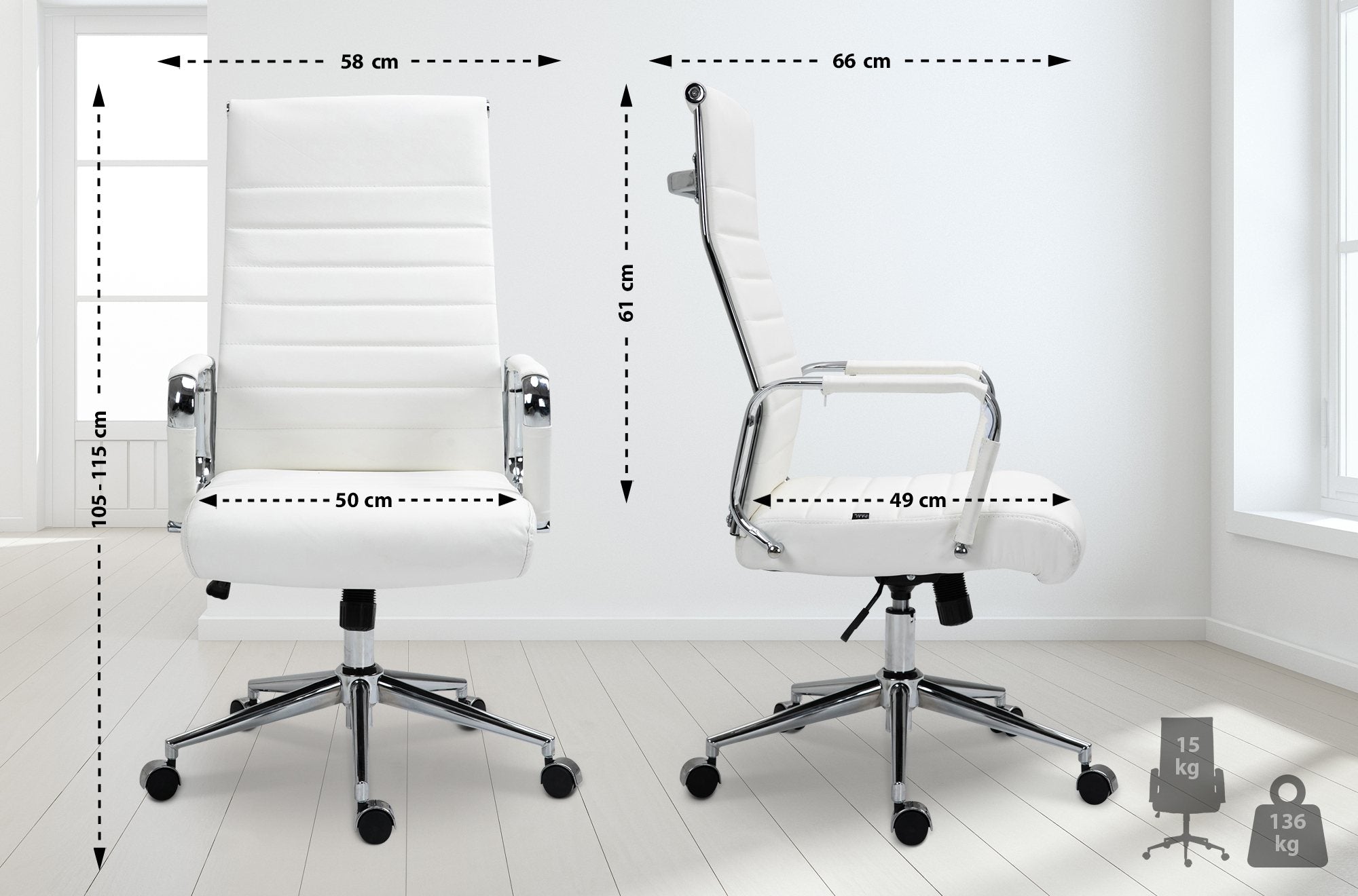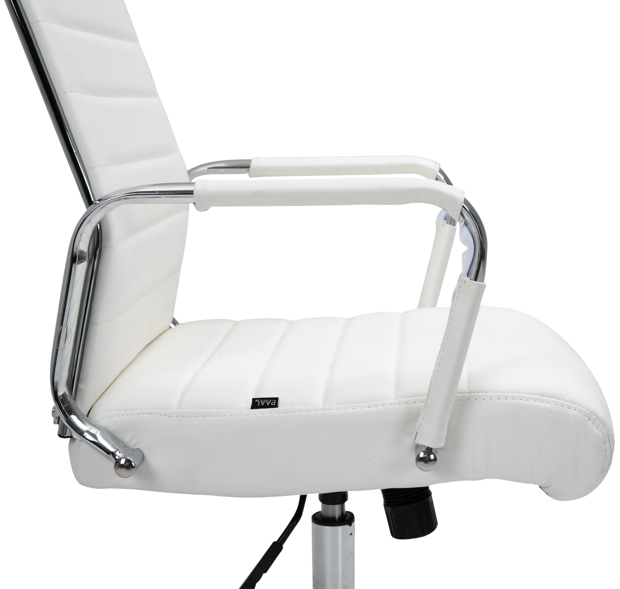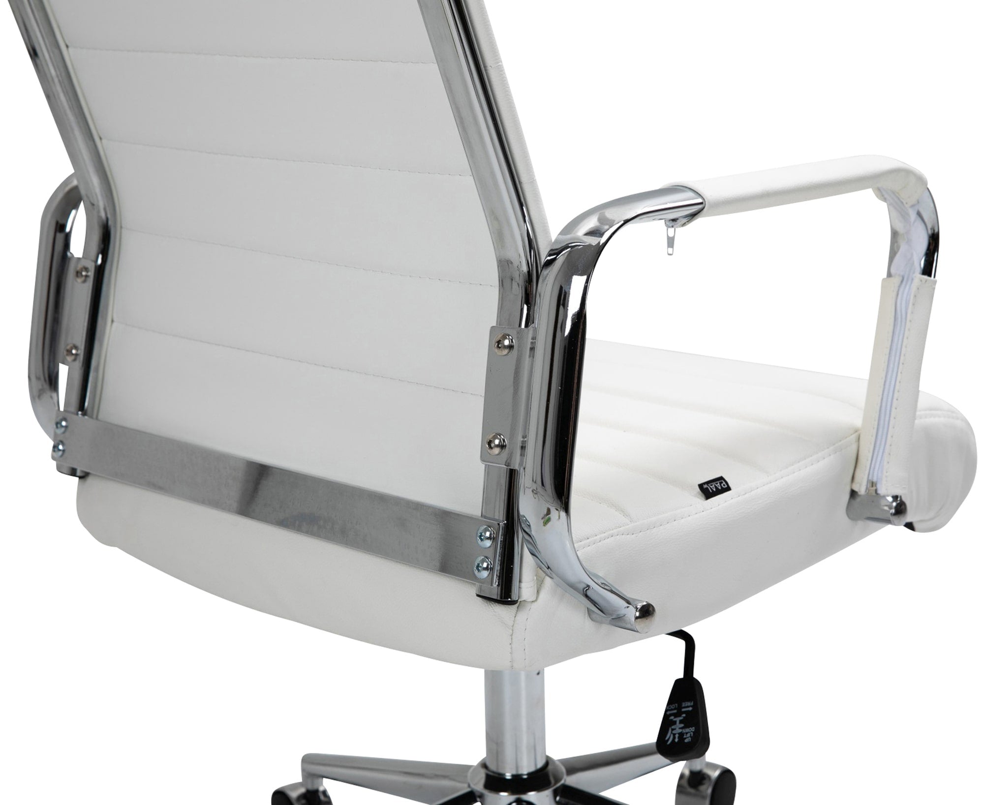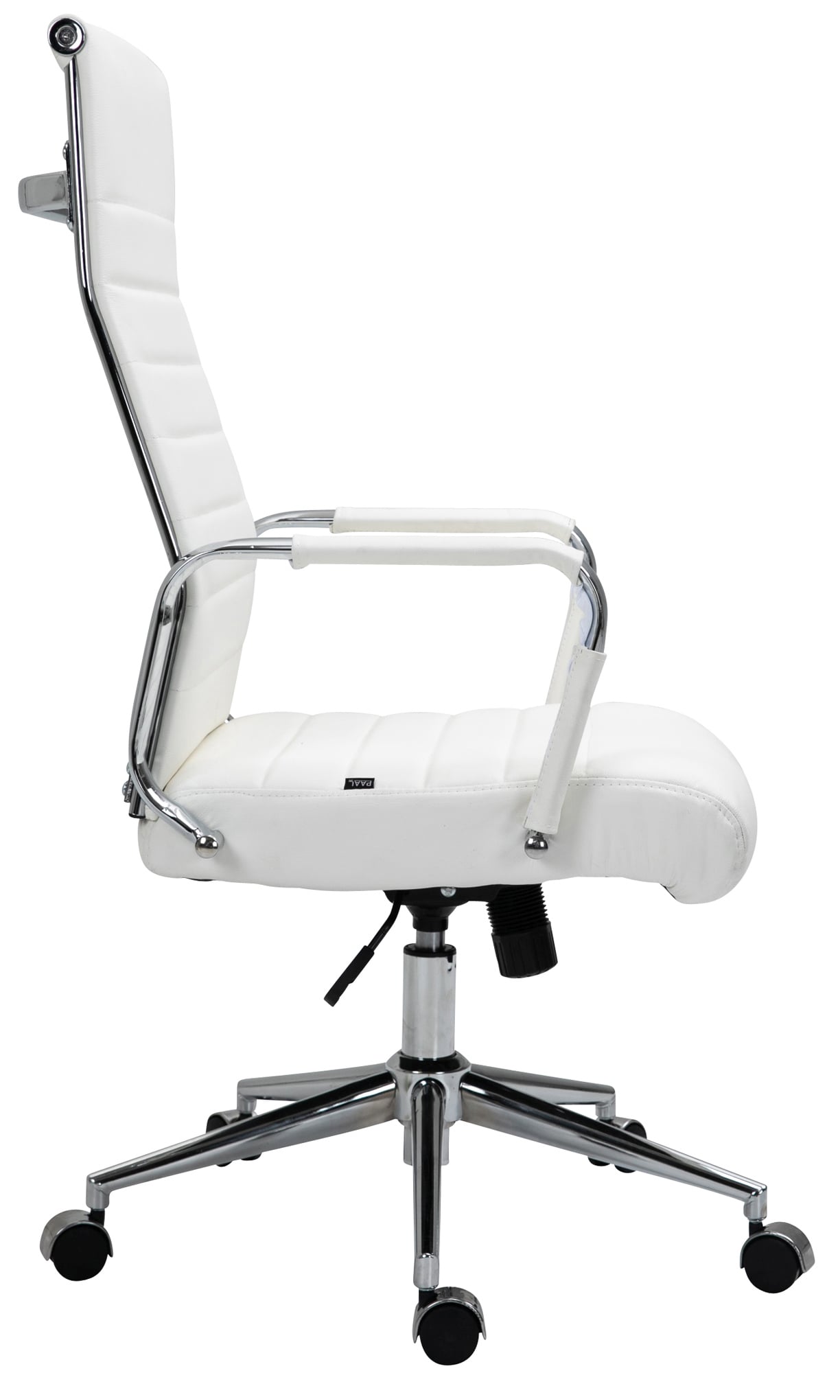 Fauteuil de bureau avec accoudoirs siège pivotant mécanisme à bascule en cuir véritable blanc 10_0002516